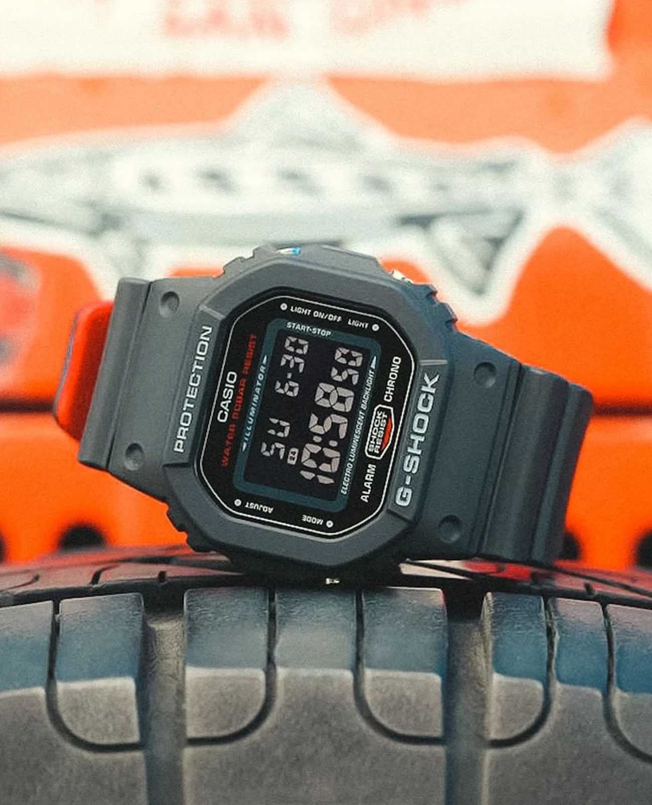 Японские мужские часы-хронографХронографФункция позволяет измерять отрезки времени с особой точностью: часы, минуты, секунды. Верным признаком хронографа является наличие на циферблате 3 дополнительных окошек-счётчиков. Casio G-Shock DW-5600UHR-1DR. Силуэт данного корпуса давно стал классикой и является одним из самых узнаваемых в мире наручных часов. Прекрасный аксессуар на каждый день, который дополнит любой из ваших образов. Корпус изготовлен из полимерного материала. Минеральное стеклоМинеральное стеклоМинеральное стекло представляет собой искусственно выращенный минерал кварца. Такое стекло отличается особой устойчивостью к повреждениям и царапинам. Уступает по некоторым качествам сапфировому стеклу. устойчивое к появлению царапин, обладающее высокой прозрачностью. Светодиодная подсветкаСветодиодная подсветкаСветодиодная или LED-подсветка обеспечивает появление яркого холодного свечения за счёт LED-элементов - маленьких лампочек. Они потребляют минимальное количество энергии, чаще всего можно встретить 1 светодиод, в нижней части циферблата. (Super Illuminator), послесвечение. 12/24-часовой формат. вечный календарьВечный календарьКлассическое часовое усложнение, представляющее собой календарь, рассчитанный на несколько лет вперёд (стандартно – до 2099 года). Определяет текущую дату, день недели, месяц.. СекундомерСекундомерСекундоме́р — прибор, способный измерять интервалы времени с точностью до долей секунды.. ТаймерТаймерОтсчитывает секунды в обратном направлении в заданном интервале времени.. Часовой сигнал времени. Многофункциональный будильник. Оповещение о вспышке мигает с зуммером, который сигнализирует о тревогах, сигналах часового времени, сигнале таймера обратного отсчета времени. Класс водозащиты: 200 метров, позволит плавать, нырять и заниматься другими водными видами спорта. Ремешок из полимерного материала на стандартной застежке.