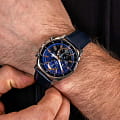 Градиентный циферблат защищён минеральным стекломМинеральное стеклоМинеральное стекло представляет собой искусственно выращенный минерал кварца. Такое стекло отличается особой устойчивостью к повреждениям и царапинам. Уступает по некоторым качествам сапфировому стеклу.. Японский кварцевый механизм отличается высокой точностью хода 20 +/- секунд в месяц. Ремешок изготовлен из натуральной кожи. Завинчивающаяся задняя крышка усиливает водостойкость в 10 бар. Стрелки дополнены люминесцентной подсветкойЛюминесцентное покрытиеПозволяет считывать показания времени в темноте. Производители наносят на стрелки, часовые индексы, безель или поверхность циферблата светонакопительный состав, дающий холодное свечение.. Подсветка NeobriteПодсветка NeobriteИспользование светонакопительных составов на основе сульфида цинка или алюмината стронция, яркий свет можно наблюдать на протяжении 6-10 часов после «зарядки» часов около источника света. обеспечивает длительное послесвечение в темноте даже после кратковременного нахождения на свету. Часы-хронографХронографФункция позволяет измерять отрезки времени с особой точностью: часы, минуты, секунды. Верным признаком хронографа является наличие на циферблате 3 дополнительных окошек-счётчиков. с секундомеромСекундомерСекундоме́р — прибор, способный измерять интервалы времени с точностью до долей секунды. с точностью показаний 1/10с и временем измерения 1ч. Циферблат с окошком даты. Заводная головка с защитой. Задняя крышка с винтовым фиксатором. Кожаный ремешок с классической застежкой.