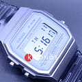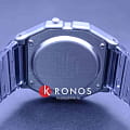 Аксессуар наделён узнаваемым квадратным корпусом, прототипом для которого стали первые модели от Casio. Винтажное исполнение не лишено современности, наручные часы предстают перед нами в полупрозрачном чёрном формате. Корпус выполнен из полимера, он обезопасит японский кварцевый калибр от случайных ударов и повреждений. Идентичный материал был выбран и для ремешка, комфортно сидящего на запястье. Часы оснащены светодиодной микроподсветкойСветодиодная подсветкаСветодиодная или LED-подсветка обеспечивает появление яркого холодного свечения за счёт LED-элементов - маленьких лампочек. Они потребляют минимальное количество энергии, чаще всего можно встретить 1 светодиод, в нижней части циферблата., освещающей циферблат сбоку. 1 батарейка будет обеспечивать питание механизма на протяжении 7 лет. Отображение времени можно выбрать в формате 12-ти или 24-х часов. Функции: будильник, секундомер, автоматический календарь. Габариты: 38,2 x 33,2 x 8,5 мм.