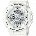Мужские противоударные японские часы Casio G-Shock GA-110MW-7ADR (GA-110MW-7A), электронный механизм с высокой точностью. Класс водозащиты: 200 метров, позволит плавать, нырять и заниматься другими водными видами спорта. Корпус часов изготовлен из пластика, белого цвета.