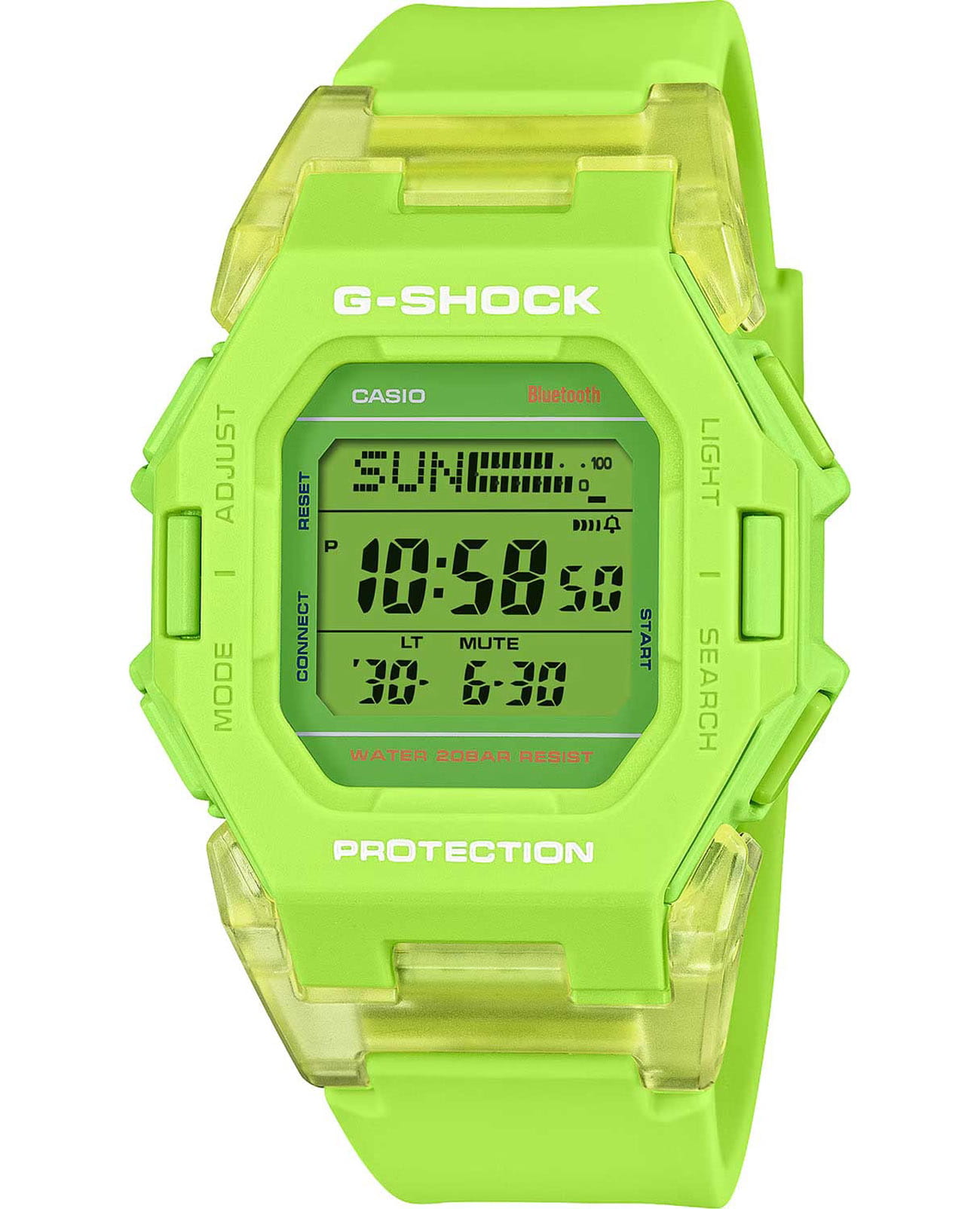 Японские мужские ударопрочные часы c функцией Bluetooth Casio G-Shock GD-B500S-3, кварцевый механизм с высокой точностью. Класс водозащиты: 200 метров, позволит плавать, нырять и заниматься другими водными видами спорта. Ударопрочный корпусУдаропрочный корпусМеханизм заключён в корпус, выполненный из современных материалов, устойчивых к ударам, механическим повреждениям и падению с высоты: инновационный пластик, карбон, нержавеющая сталь, титан. защищает механизм от ударов и вибрации. Долговечный и экономичный матричный дисплей MIP LCD высокой четкости улучшает читаемость и восприятие любых данных. Отображаемые графики приливов и отливов, данные о Луне, время и уровень прилива/отлива, время восхода/заката солнца. Фирменная экономичная светодиодная подсветкаСветодиодная подсветкаСветодиодная или LED-подсветка обеспечивает появление яркого холодного свечения за счёт LED-элементов - маленьких лампочек. Они потребляют минимальное количество энергии, чаще всего можно встретить 1 светодиод, в нижней части циферблата. Super Illuminator с функцией Afterglow. Базовые функции: 12-ти и 24-х часовой формат времени, секундомерСекундомерСекундоме́р — прибор, способный измерять интервалы времени с точностью до долей секунды. с точностью показаний 1 сек и временем измерения 100 ч, сплит-хронографСплит-хронографИспользуется для измерения продолжительности нескольких временных отрезков, начинающихся одновременно, а заканчивающихся в разное время., возможность установить 5 таймеров, таймер обратного отсчета от 1 сек до 1 ч с автоповтором, мировое времяМировое время Полезное часовое усложнение, отображающее время в основных городах и известных областях по всему миру, оно связано с часовыми поясами, удобно для путешественников и бизнесменов. – 38 городов (38 часовых поясов), всемирное координированное время (UTCUTCВсемирное кординационное время, не имеющее привязки к географическому положению Гринвича, основывается на атомном отсчёте времени. Регулировка времени осуществляется более точно, чем устаревшее GMT.