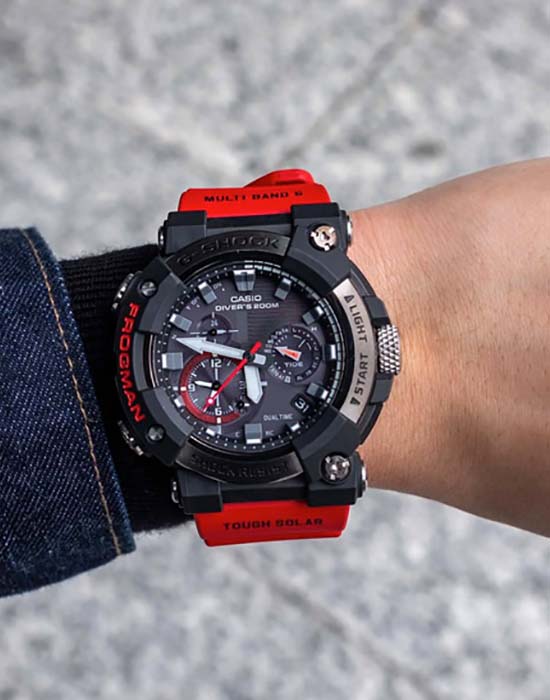 Часы Casio G-Shock GWF-A1000-1A4DR - модель из лимитированной серии Frogman для дайверов со стрелочной индикацией времени и ассиметричным дизайном циферблата, который является отличительной чертой линейки часов Frogman с момента ее запуска в 1993 году.