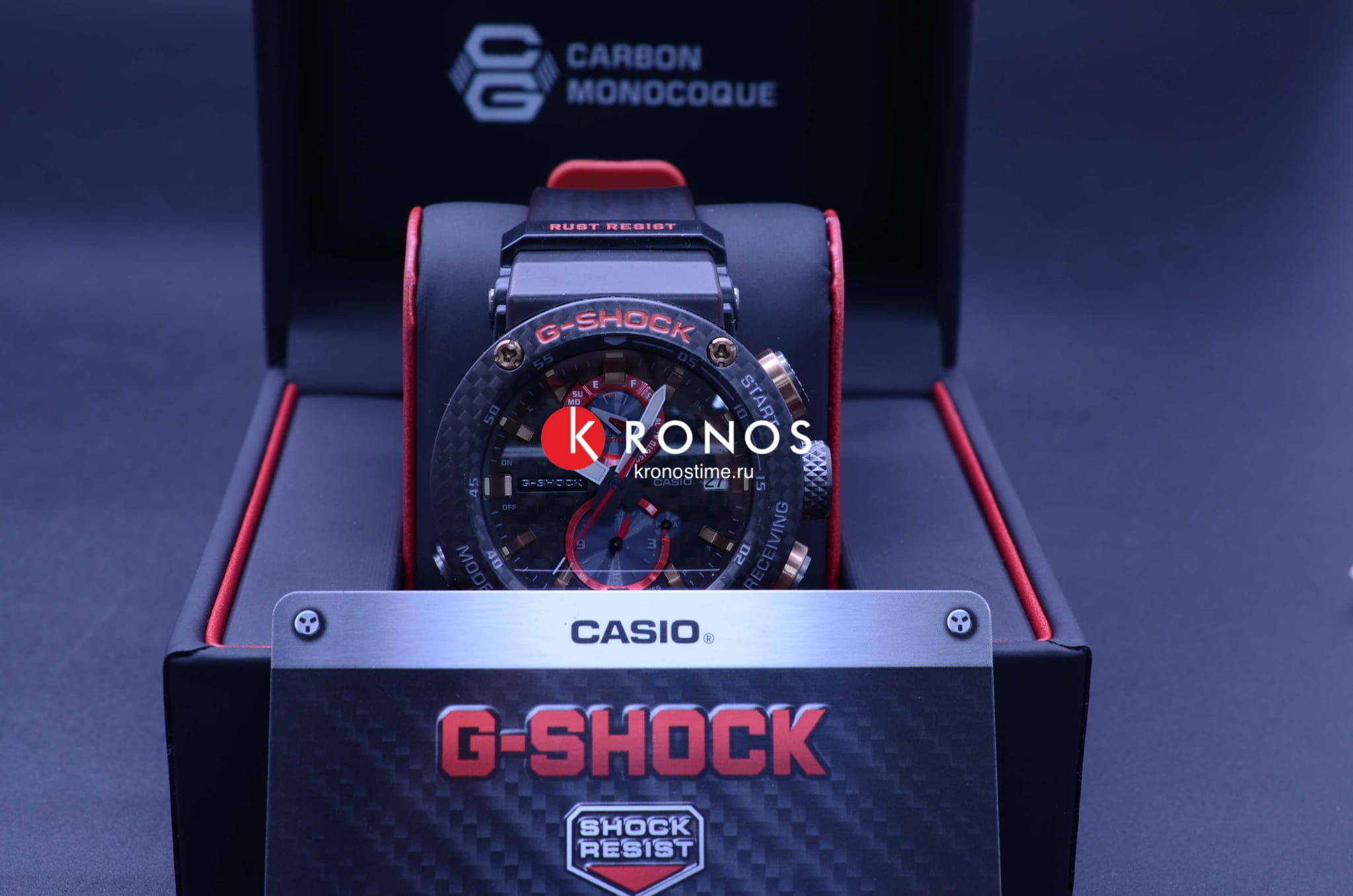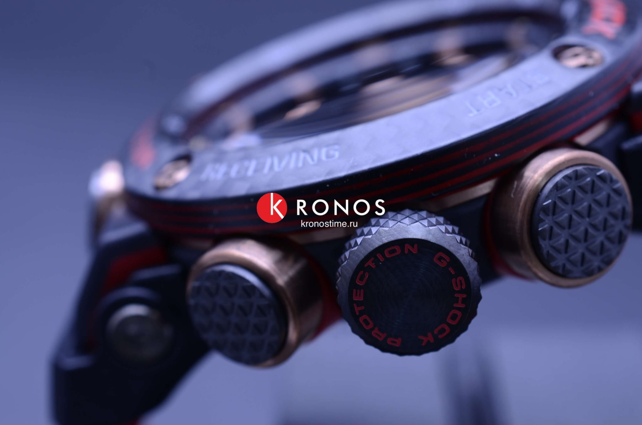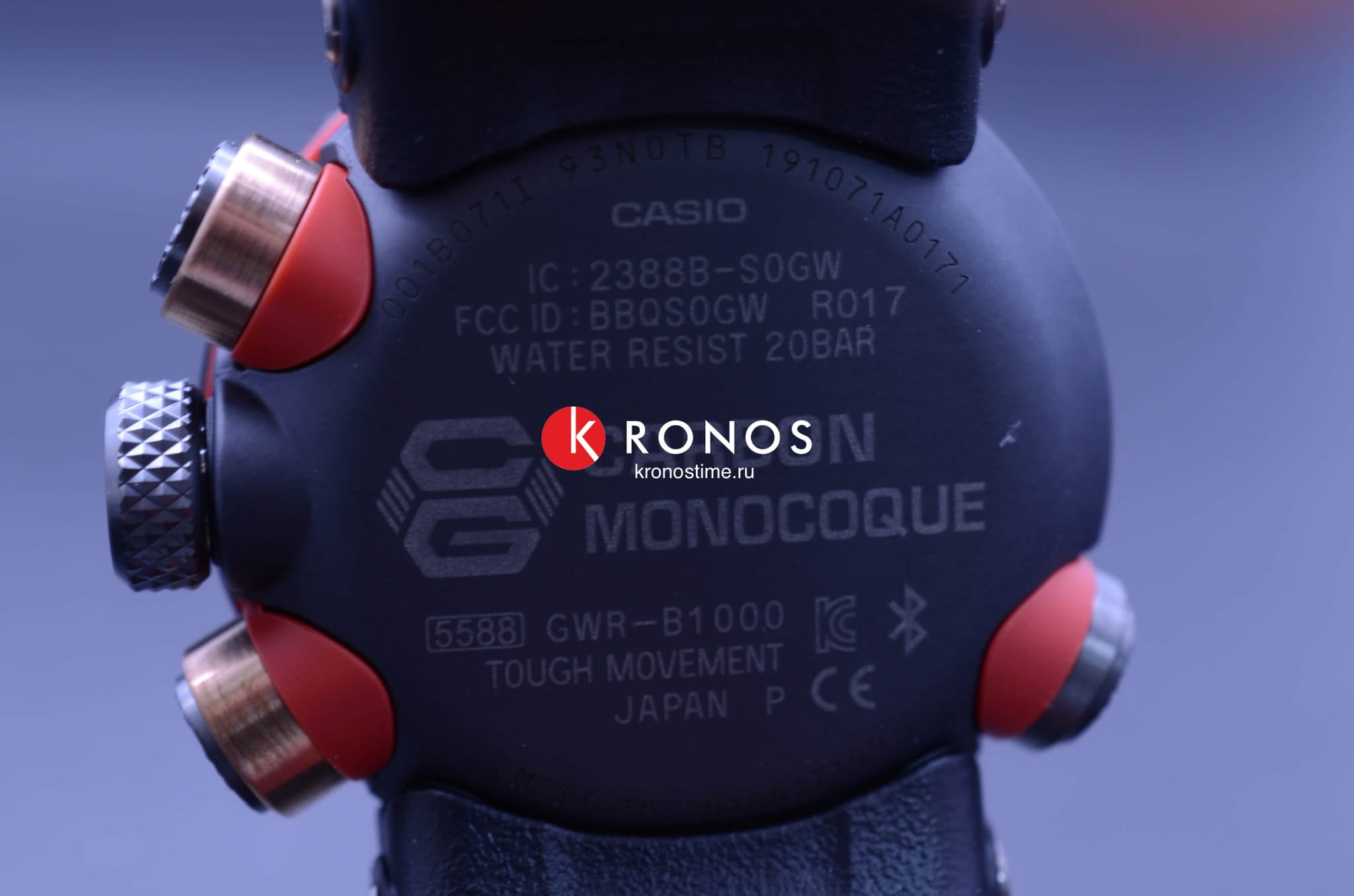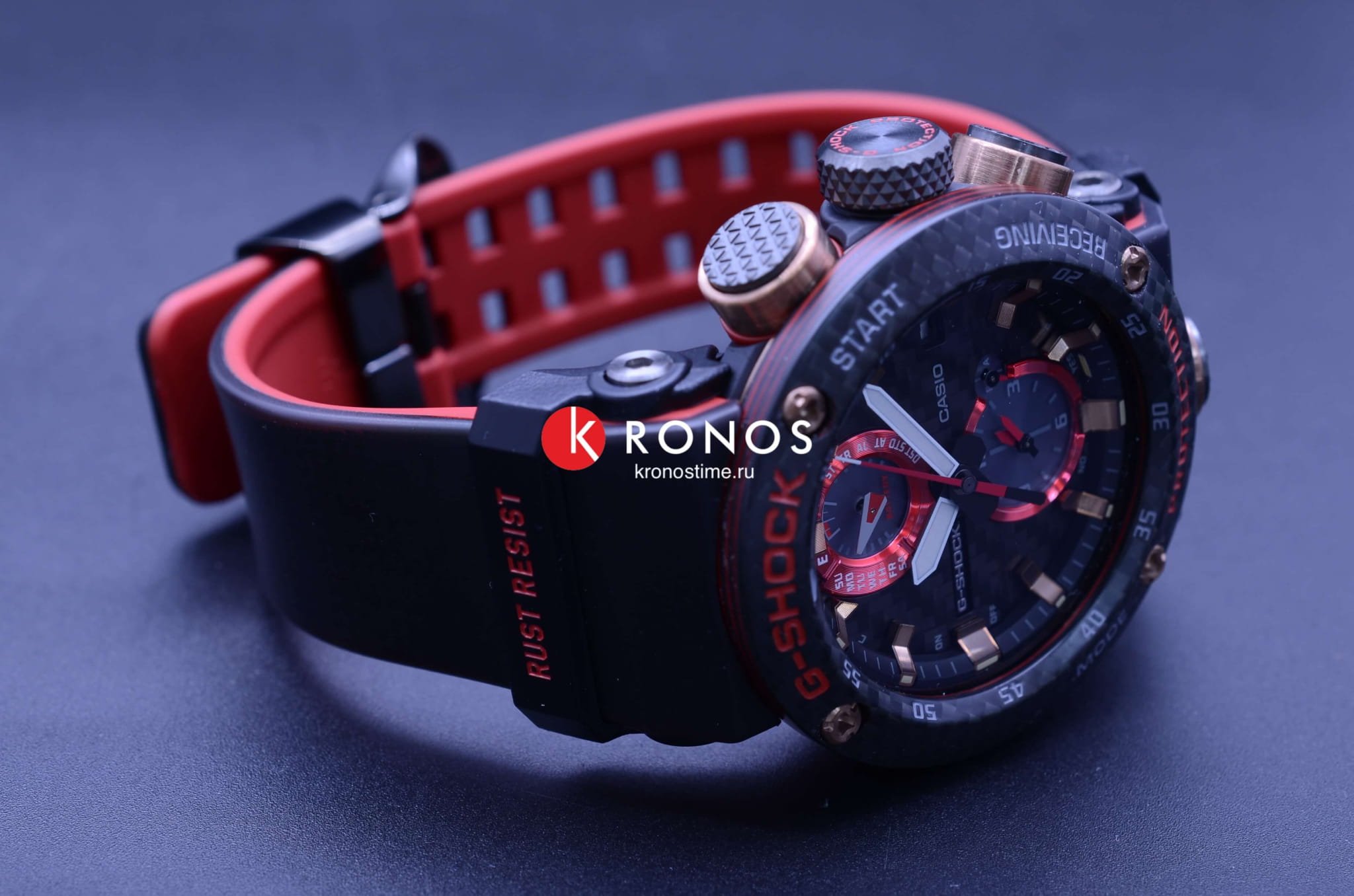 Внушительный аксессуар стильно смотрится на широком запястье, гармонично смотрятся крупные детали в красном и бронзовом цвете. Задняя крышка здесь отсутствует, ударопрочный корпусУдаропрочный корпусМеханизм заключён в корпус, выполненный из современных материалов, устойчивых к ударам, механическим повреждениям и падению с высоты: инновационный пластик, карбон, нержавеющая сталь, титан. сделан из монолитного углеродного монокока, вдохновлённого конструкцией ранних самолётов. Он состоит из 52 карбоновых слоёв, уникальная текстура просматривается на боковых частях безеляБезельВнешний ободок, закрепляющий стекло. В спортивных часах так называется поворотное кольцо с делениями на циферблате, выполняет роль таймера – замеряет отрезки времени на шкале. Неподвижный безель – элемент декора. Однонаправленно вращающийся безель на дайверских часах позволяет фиксировать моменты погружения и выныривания на поверхность. – с успехом реализована технология Carbon Core GuardCarbon Core Guard Новейшая структура корпуса, разработанная Casio. Полиуретановая пластина дополнительно усилена карбоновыми вставками, что придаёт специальную защиту от механических повреждений. Карбон отличается лёгкостью и прочностью.. Полимерный ремешок тоже имеет усиление карбоновыми волокнами. Наручные часы обладают полезным функционалом: BluetoothBluetoothСовременная технология, позволяющая синхронизировать часы с телефоном и переносить данные. Часы с Bluetooth расширяют возможности вашего смартфона и делают его использование ещё более удобным., будильник, мировое времяМировое время Полезное часовое усложнение, отображающее время в основных городах и известных областях по всему миру, оно связано с часовыми поясами, удобно для путешественников и бизнесменов. , таймер, приём радиосигнала, питание от солнечной батареи . Сапфировое стекло с антибликовой обработкой. Яркая люминесцентная подсветкаЛюминесцентное покрытиеПозволяет считывать показания времени в темноте. Производители наносят на стрелки, часовые индексы, безель или поверхность циферблата светонакопительный состав, дающий холодное свечение.. Габариты: 50,1 x 46,4 x 16,9 мм.