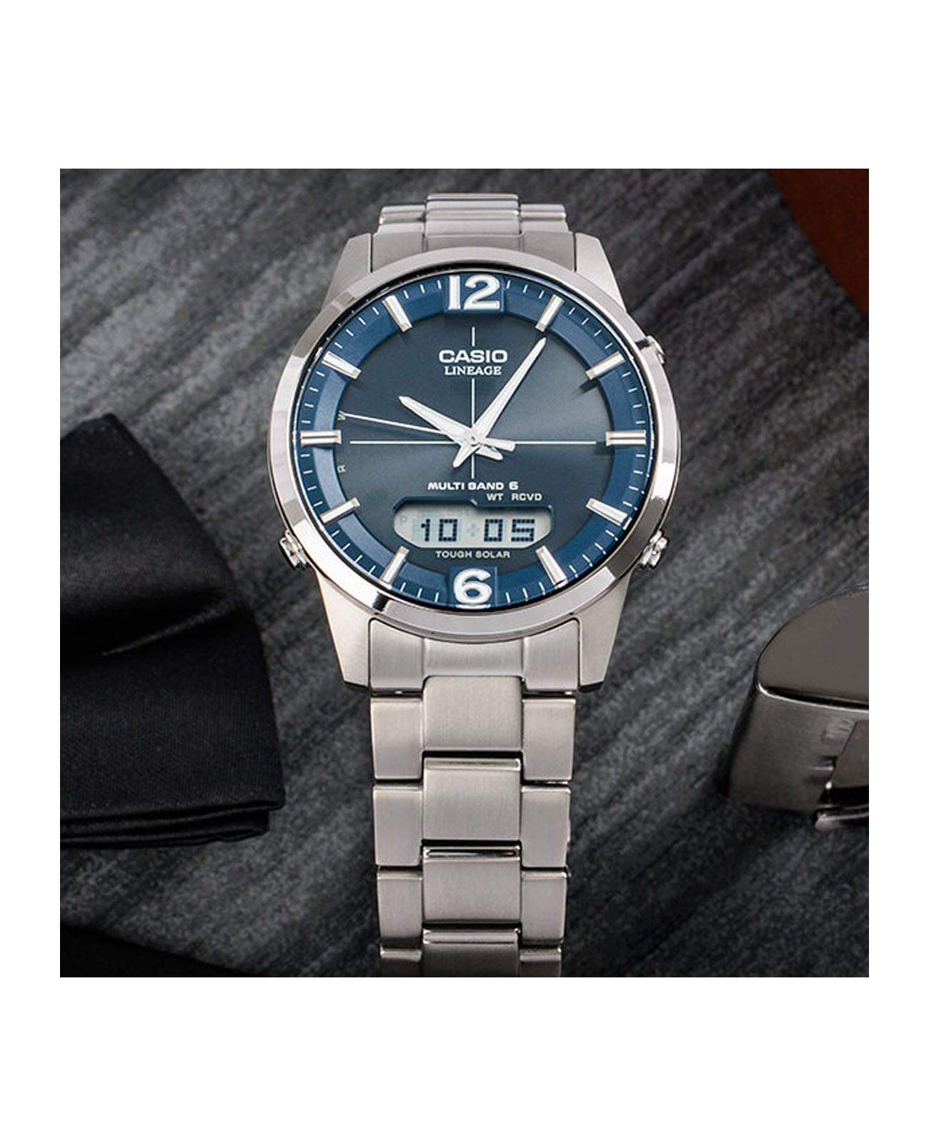 Японские титановые наручные часы c хронографомХронографФункция позволяет измерять отрезки времени с особой точностью: часы, минуты, секунды. Верным признаком хронографа является наличие на циферблате 3 дополнительных окошек-счётчиков. Casio Radio Controlled LCW-M170TD-2AER, кварцевый механизм с высокой точностью. Сапфировое стекло устойчивое к появлению царапин, обладающее высокой прозрачностью. Корпус часов изготовлен из стали. Питание от солнечной энергии, индикатор заряда батареи. Циферблат подсвечивается светодиодомСветодиодная подсветкаСветодиодная или LED-подсветка обеспечивает появление яркого холодного свечения за счёт LED-элементов - маленьких лампочек. Они потребляют минимальное количество энергии, чаще всего можно встретить 1 светодиод, в нижней части циферблата.. Подсветка NeobriteПодсветка NeobriteИспользование светонакопительных составов на основе сульфида цинка или алюмината стронция, яркий свет можно наблюдать на протяжении 6-10 часов после «зарядки» часов около источника света. обеспечивает длительное послесвечение в темноте даже после кратковременного нахождения на свету. Технология Multi Band 6 позволяет принимать сигналы от шести радиовышек, расположенных в различных точках земного шара, которые передают временные сигналы от определенных атомных часов. Коррекция текущего времени радиосигналом на территории почти всей Европы, США, Японии и Китая. СекундомерСекундомерСекундоме́р — прибор, способный измерять интервалы времени с точностью до долей секунды. с точностью показаний 1/10с и временем измерения 1ч. ТаймерТаймерОтсчитывает секунды в обратном направлении в заданном интервале времени. обратного отсчета от 1мин до 100мин. Мировое времяМировое время Полезное часовое усложнение, отображающее время в основных городах и известных областях по всему миру, оно связано с часовыми поясами, удобно для путешественников и бизнесменов. . 12-ти и 24-х часовой формат времени. Выбор языка отображения дня недели и месяца. Функция включения/отключения звука. Класс водозащиты: 50 метров, позволит защитить корпус от случайных брызг или капель дождя. Стальной браслет на раскладной застёжкеРаскладная застёжкаТакой тип застёжки используется только на браслетах из металла. Она никогда не раскрывается полностью, происходит разделение на 2 и более частей. Раскладывающая застёжка снизит вероятность потери часов к минимуму..