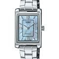 Casio LTP-1234DS-2A — женские часы с элегантным прямоугольным корпусом, сочетающие классический дизайн и практичность. Корпус из нержавеющей стали имеет размеры 32 × 21 мм и толщину всего 7,4 мм, благодаря чему модель смотрится утончённо и удобно сидит на запястье. Циферблат выполнен из перламутра, что придаёт ему мягкое сияние и глубину. Лаконичная разметка и тонкие стрелки подчёркивают изысканность модели. Поверхность защищена прочным минеральным стекломМинеральное стеклоМинеральное стекло представляет собой искусственно выращенный минерал кварца. Такое стекло отличается особой устойчивостью к повреждениям и царапинам. Уступает по некоторым качествам сапфировому стеклу., устойчивым к царапинам и сохраняющим безупречный внешний вид. Точный кварцевый механизм обеспечивает стабильный ход и не требует подзавода. Питание осуществляется от батарейки с ресурсом до 3 лет. Браслет из нержавеющей стали оснащён удобной раскладной застёжкойРаскладная застёжкаТакой тип застёжки используется только на браслетах из металла. Она никогда не раскрывается полностью, происходит разделение на 2 и более частей. Раскладывающая застёжка снизит вероятность потери часов к минимуму., которая обеспечивает надёжную фиксацию и лёгкость в использовании. Водозащита уровня WR позволяет не бояться случайных брызг или дождя. LTP-1234DS-2A — утончённая модель для повседневной носки, сочетающая в себе надёжность, комфорт и классическую элегантность.