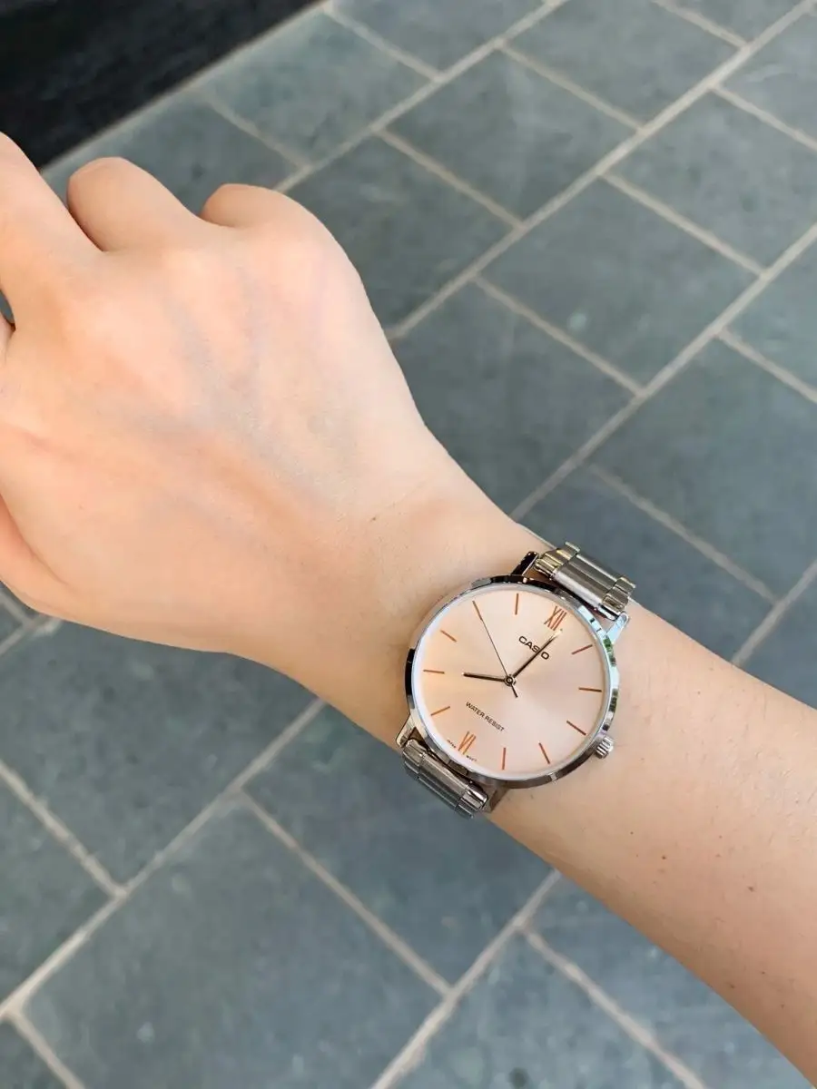 Японские женские часы  LTP-VT01D-4B с минеральным стекломМинеральное стеклоМинеральное стекло представляет собой искусственно выращенный минерал кварца. Такое стекло отличается особой устойчивостью к повреждениям и царапинам. Уступает по некоторым качествам сапфировому стеклу. изящно смотрятся на запястье, они привлекают классическим исполнением и правильной геометрией. Минималистичная модель станет отличным решением для любого случая: на работу, переговоры с деловыми партнёрами, прогулку с друзьями или праздничный вечер. Отсутствуют лишние детали, что позволяет часам быть актуальными на долгие годы. Корпус выполнен из нержавеющей стали. Модель комплектуется надёжным механизмом, точность хода которого составляет +/- 20 сек/мес. Стальной браслет на раскладной застёжкеРаскладная застёжкаТакой тип застёжки используется только на браслетах из металла. Она никогда не раскрывается полностью, происходит разделение на 2 и более частей. Раскладывающая застёжка снизит вероятность потери часов к минимуму.. Класс водозащиты: 30 метров, позволит защитить корпус от случайных брызг или капель дождя.