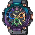 Редкий лимитированный релиз от Casio, стальная модель G-Shock MTG в космической расцветке на полупрозрачном черном полимерном ремешке. Релиз посвящен красоте космоса, а именно разноцветному сиянию далеких галактик и туманностей. Именно цветные градиентные переходы элементов циферблата в часах символизируют этот визуальный эффект при взгляде на далекие космические объекты.
