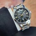 Японские мужские наручные часы с минеральным стекломМинеральное стеклоМинеральное стекло представляет собой искусственно выращенный минерал кварца. Такое стекло отличается особой устойчивостью к повреждениям и царапинам. Уступает по некоторым качествам сапфировому стеклу. Casio MTP-1381G-1A, кварцевый механизм с высокой точностью. Класс водозащиты: 50 метров, позволит защитить корпус от случайных брызг или капель дождя. Корпус часов изготовлен из стали. Стальной браслет на раскладной застёжкеРаскладная застёжкаТакой тип застёжки используется только на браслетах из металла. Она никогда не раскрывается полностью, происходит разделение на 2 и более частей. Раскладывающая застёжка снизит вероятность потери часов к минимуму. с IP-покрытиемIP-покрытиеМетод ионного напыления. Демонстрирует повышенную устойчивость к истиранию, окислению и химическим веществам. Под воздействием высокого давления и температуры около 1500°C молекулы металла надёжно соединяются с частицами корпуса часов.. Окошко даты находится в положении 6 часов.