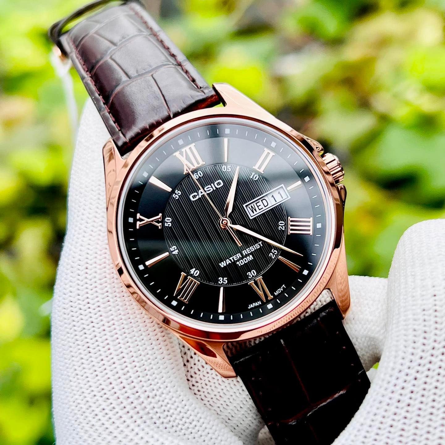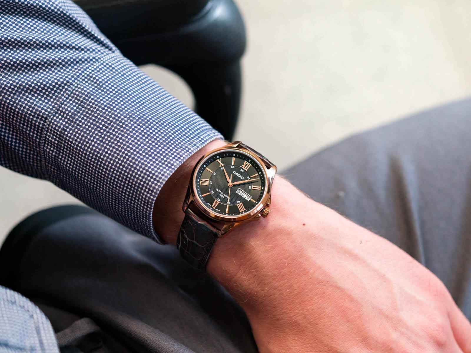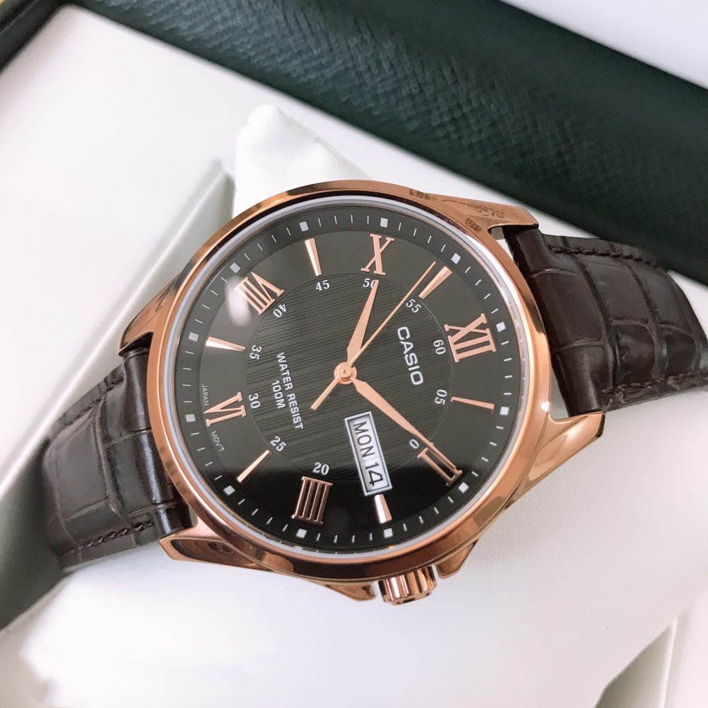 Японские мужские наручные часы с минеральным стекломМинеральное стеклоМинеральное стекло представляет собой искусственно выращенный минерал кварца. Такое стекло отличается особой устойчивостью к повреждениям и царапинам. Уступает по некоторым качествам сапфировому стеклу. Casio Collection MTP-1384L-1A, кварцевый механизм с высокой точностью. Класс водозащиты: 100 метров, позволит плавать, нырять и заниматься другими водными видами спорта. Корпус часов изготовлен из стали с IP-покрытиемIP-покрытиеМетод ионного напыления. Демонстрирует повышенную устойчивость к истиранию, окислению и химическим веществам. Под воздействием высокого давления и температуры около 1500°C молекулы металла надёжно соединяются с частицами корпуса часов.. Кожаный ремешок на стандартной застёжке. Окошки дня недели и даты находятся в положении 3 часа. Заводная головка с защитой. Задняя крышка с винтовым фиксатором.