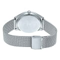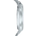 Аксессуар в классическом серебристом исполнении никогда не утратит актуальности, он будет прекрасным дополнением к классическому костюму, спортивной футболке, модных джинсах. Компактный циферблат выполнен в минималистичном стиле, с метками в виде штрихов. Контрастные стрелки и метки хорошо видны на его фоне. Браслет серебристого цвета. Высокоточный кварцевый механизм.