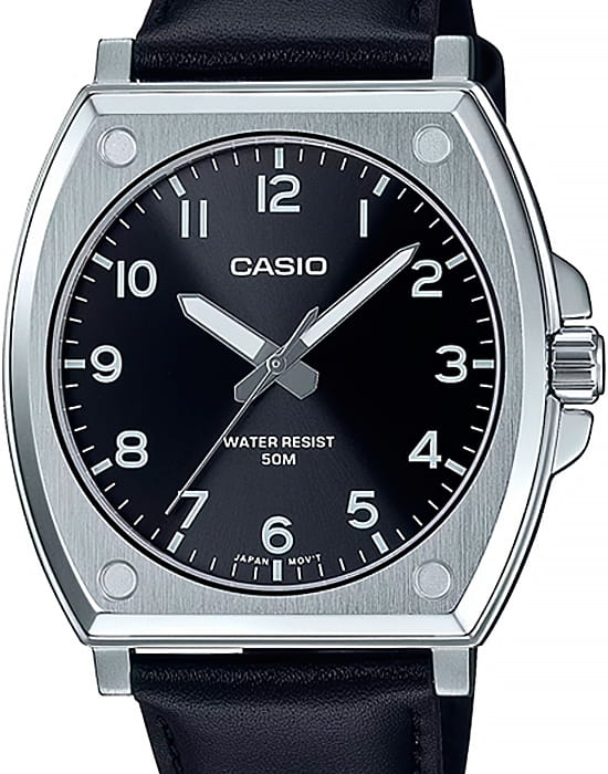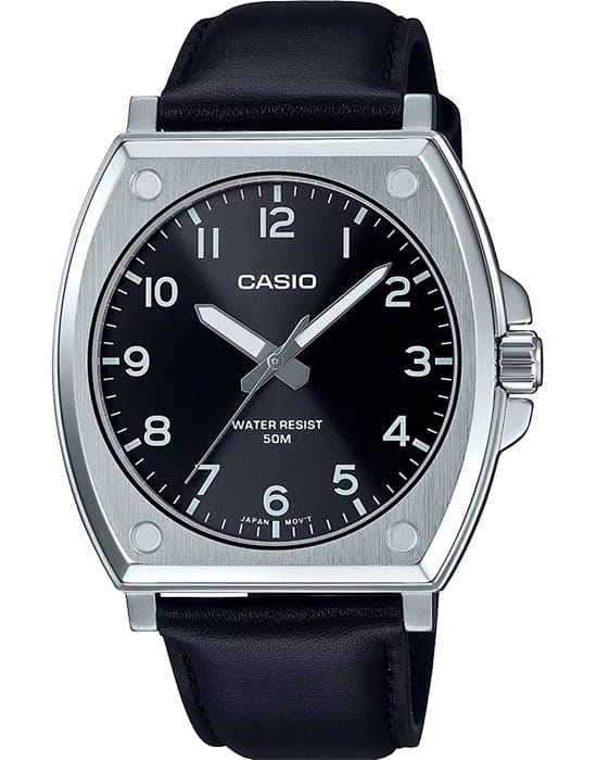 Японские мужские часы с минеральным стекломМинеральное стеклоМинеральное стекло представляет собой искусственно выращенный минерал кварца. Такое стекло отличается особой устойчивостью к повреждениям и царапинам. Уступает по некоторым качествам сапфировому стеклу. Casio Collection MTP-E730L-1AVDF (MTP-E730L-1A), кварцевый механизм с высокой точностью. Корпус часов изготовлен из нержавеющей стали. Стрелки с люминесцентным покрытиемЛюминесцентное покрытиеПозволяет считывать показания времени в темноте. Производители наносят на стрелки, часовые индексы, безель или поверхность циферблата светонакопительный состав, дающий холодное свечение.. Батарея рассчитана на 3 года. Заводная головка с защитой. Класс водозащиты: 50 метров, позволит защитить корпус от случайных брызг или капель дождя. Кожаный ремешок.