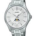 Японские мужские часы с минеральным стекломМинеральное стеклоМинеральное стекло представляет собой искусственно выращенный минерал кварца. Такое стекло отличается особой устойчивостью к повреждениям и царапинам. Уступает по некоторым качествам сапфировому стеклу. Casio Collection MTP-M100D-7A, кварцевый механизм с высокой точностью. Корпус часов изготовлен из стали с IP-покрытиемIP-покрытиеМетод ионного напыления. Демонстрирует повышенную устойчивость к истиранию, окислению и химическим веществам. Под воздействием высокого давления и температуры около 1500°C молекулы металла надёжно соединяются с частицами корпуса часов.. Циферблат с метками в виде штрихов выполнен по технологии Sunray (солнечные лучи). Отображение фаз Луны. Заводная головка с защитой. Батарейка рассчитана на 3 года. Задняя крышка с винтовым фиксатором. Класс водозащиты: 50 метров, позволит защитить корпус от случайных брызг или капель дождя. Стальной браслет с IP-покрытиемIP-покрытиеМетод ионного напыления. Демонстрирует повышенную устойчивость к истиранию, окислению и химическим веществам. Под воздействием высокого давления и температуры около 1500°C молекулы металла надёжно соединяются с частицами корпуса часов. на раскладной застёжкеРаскладная застёжкаТакой тип застёжки используется только на браслетах из металла. Она никогда не раскрывается полностью, происходит разделение на 2 и более частей. Раскладывающая застёжка снизит вероятность потери часов к минимуму..