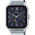 Японские мужские кварцевые часы с минеральным стекломМинеральное стеклоМинеральное стекло представляет собой искусственно выращенный минерал кварца. Такое стекло отличается особой устойчивостью к повреждениям и царапинам. Уступает по некоторым качествам сапфировому стеклу. Casio Collection MTP-M305D-1A2VDF (MTP-M305D-1A), кварцевый механизм с высокой точностью. Корпус часов изготовлен из нержавеющей стали. Особенностью модели является наличие индикатора фазы луны над шестью часами по циферблату. Индикатор имеет 4 положения и отображается новолуние и полнолуние, а также растущую и убывающую Луну. Батарейка рассчитана на 3 года. Класс водозащиты: 50 метров, позволит защитить корпус от случайных брызг или капель дождя. Стальной браслет на раскладной застёжкеРаскладная застёжкаТакой тип застёжки используется только на браслетах из металла. Она никогда не раскрывается полностью, происходит разделение на 2 и более частей. Раскладывающая застёжка снизит вероятность потери часов к минимуму..