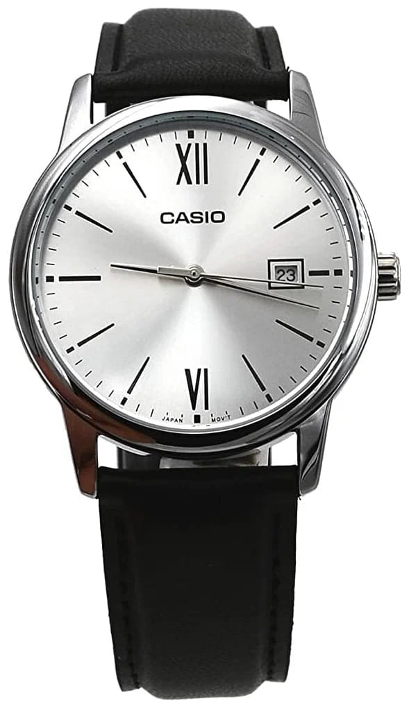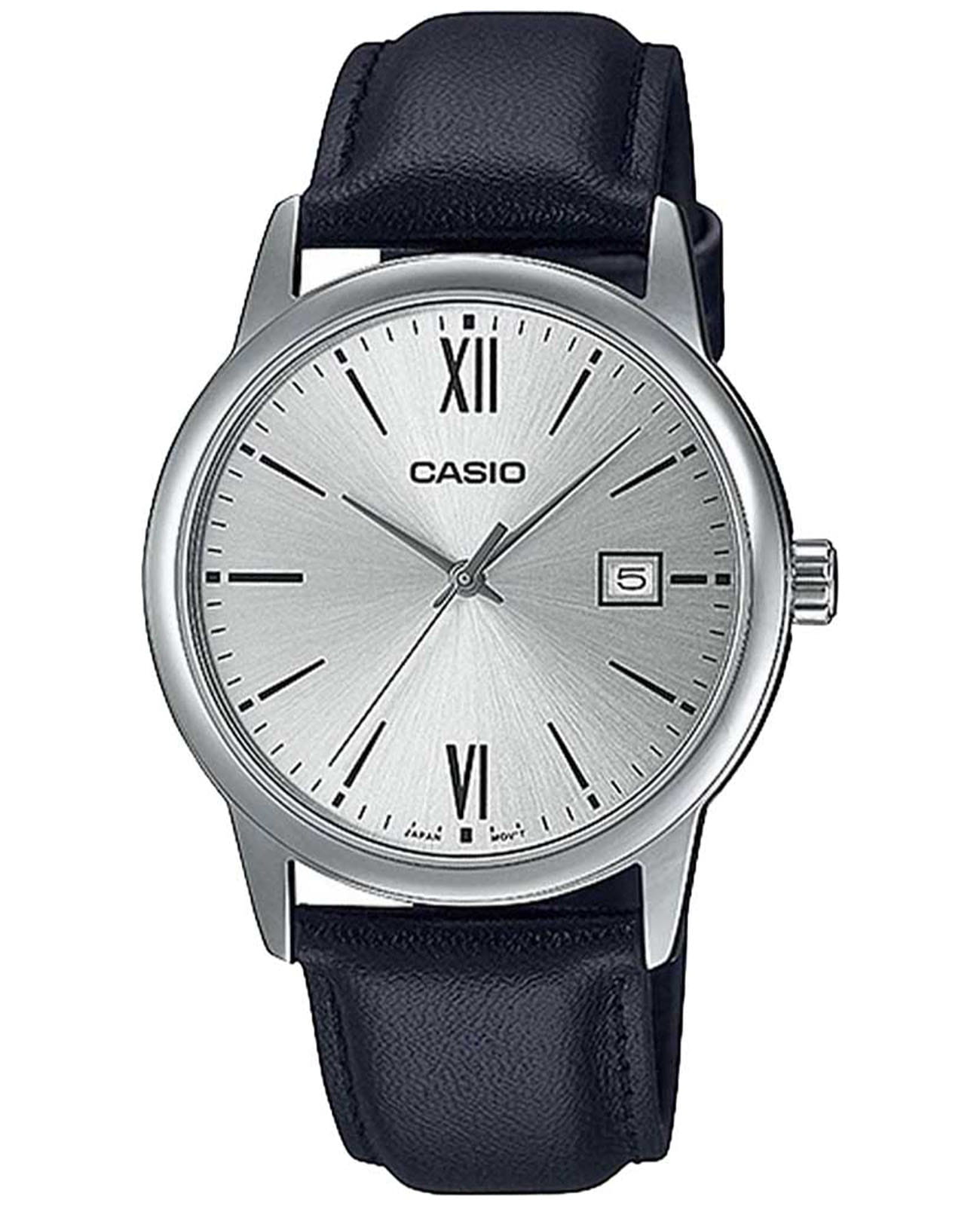Японские мужские часы с минеральным стекломМинеральное стеклоМинеральное стекло представляет собой искусственно выращенный минерал кварца. Такое стекло отличается особой устойчивостью к повреждениям и царапинам. Уступает по некоторым качествам сапфировому стеклу. Casio Collection MTP-V002L-1B3, кварцевый механизм с высокой точностью. Корпус часов изготовлен из стали. Циферблат выполнен по технологии Sunray (солнечные лучи). Метки в виде штрихов и двух римских цифр. Батарейка рассчитана на 3 года. Ремешок с классической застежкой. Окошко даты находится в положении 3 часа.