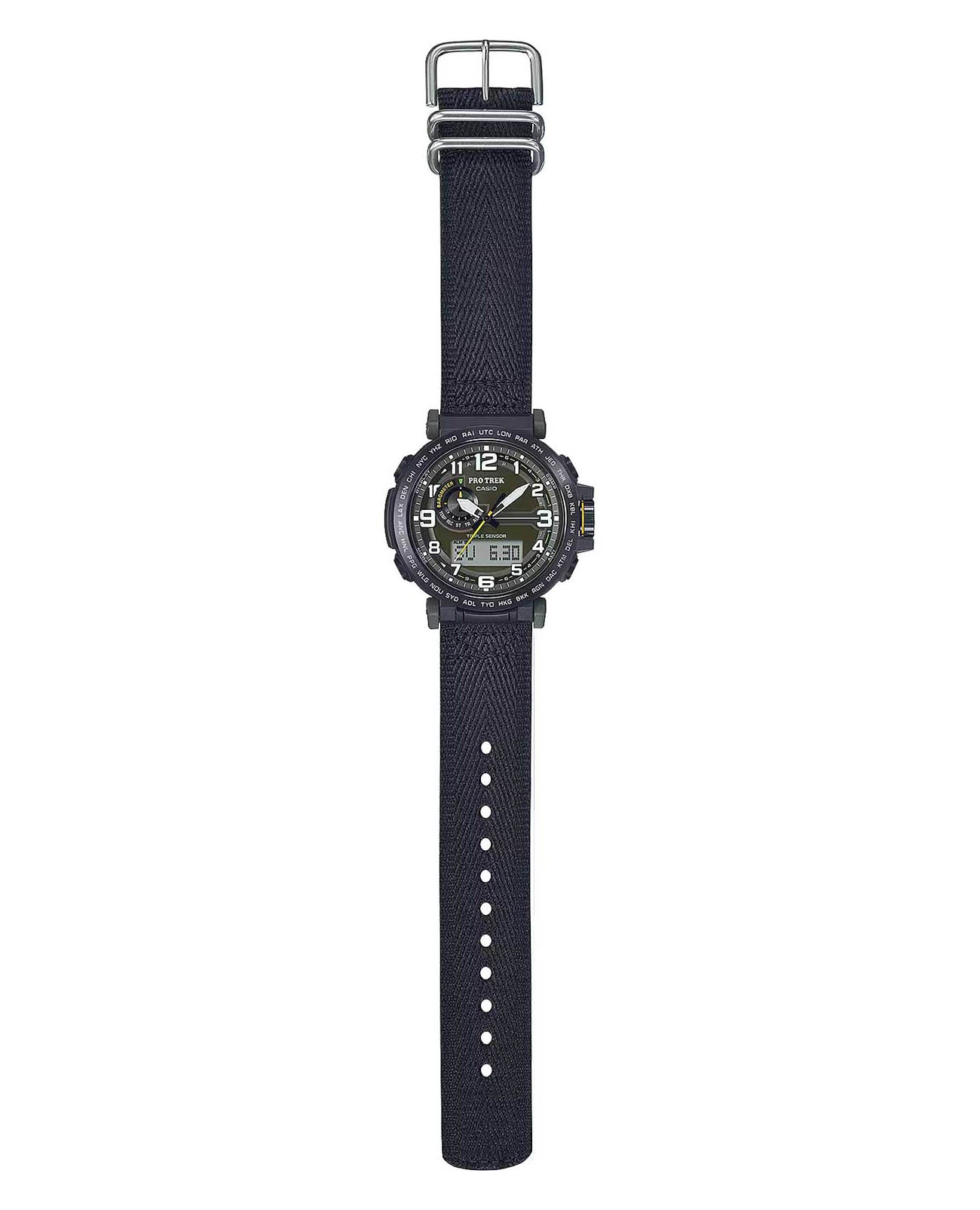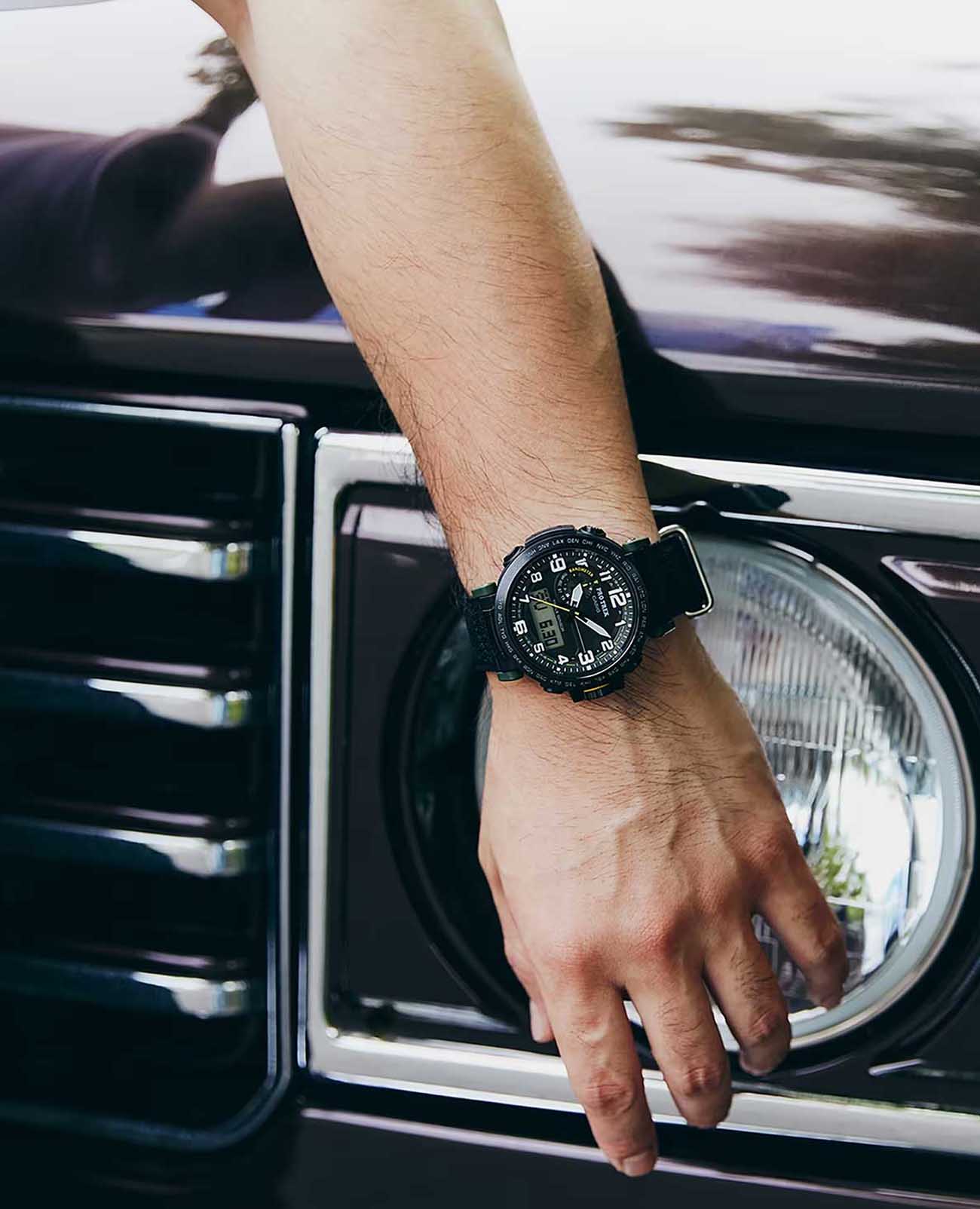 Любое ваше путешествие выйдет на новый уровень благодаря этим часам из коллекции Pro Trek. Casio Pro Trek PRG-601YB-3 для активного отдыха. Корпус и ремешок выполнены из биопластика, который изготавливается из возобновляемых органических ресурсов. Питание от солнечной энергии Tough SolarTough SolarТехнология основана на подзарядке аккумулятора от источника солнечного света, специальная панель улавливает солнечные лучи и преобразует их в энергию для работы часов. Достаточно пары минут нахождения на солнце для функционирования часов в течении суток. - солнечные батарейки большой мощности, индикатор заряда батареи. Функция автоматического сохранения энергии. Время работы аккумулятора без подзарядки приблизительно 7 месяцев, при включенной функции сохранения энергии приблизительно 25 месяцев. Модуль часов рассчитан на работу при низких температурах до -10°С/14°F. Двойная подcветка: циферблат и ЖК-дисплеи подсвечиваются светодиодом, благодаря наличию функции задержки, после отпускания кнопки освещение горит еще несколько секунд. Настраиваемое послесвечение 1,5 или 3сек. Цвет подсветки: белый. Необритовое покрытиеПодсветка NeobriteИспользование светонакопительных составов на основе сульфида цинка или алюмината стронция, яркий свет можно наблюдать на протяжении 6-10 часов после «зарядки» часов около источника света. обеспечивает длительное послесвечение в темноте даже после кратковременного нахождения на свету. 12-ти и 24-х часовой формат времени. СекундомерСекундомерСекундоме́р — прибор, способный измерять интервалы времени с точностью до долей секунды. с точностью показаний 1/100с и временем измерения 24ч. Сплит-хронографСплит-хронографИспользуется для измерения продолжительности нескольких временных отрезков, начинающихся одновременно, а заканчивающихся в разное время.. ТаймерТаймерОтсчитывает секунды в обратном направлении в заданном интервале времени. обратного отсчета от 1с до 1ч. Мировое времяМировое время Полезное часовое усложнение, отображающее время в основных городах и известных областях по всему миру, оно связано с часовыми поясами, удобно для путешественников и бизнесменов. – 29 городов (29 часовых поясов), всемирное координированное время (UTC). Функция включения/отключения летнего времени. Функция автоматической коррекции положения стрелок проверяет положение стрелок каждый час и корректирует его в случае необходимости. Технология Triple Sensor позволяет точно и легко определять сторону света, температуру и атмосферное давление. Термометр от -10° до +60°С с точностью 0,1°C. Барометр - измерение атмосферного давления от 260 до 1100 гПа (от 195 до 825 мм рт. ст.). Встроенный цифровой компас. Диапазон измерения от 0° до 359° с точностью 1°. Высотомер - встроенный датчик барометрического давления с возможностью вывода результатов в единицах высоты над уровнем моря (от -700 до 10000 метров). График набора высоты. Хранение до 30 записей о высотных точках рельефа местности - измеренной абсолютной высоты, даты и времени. Система Smart Access с помощью электронной заводной головки обеспечивает простой и удобный доступ ко всем важным функциям часов. Нажатие или поворот заводной головки позволяет переключаться между различными режимами и активировать будильникБудильникБуди́льник — часы, в заданный момент времени подающие звуковой, световой и/или в редких случаях друго