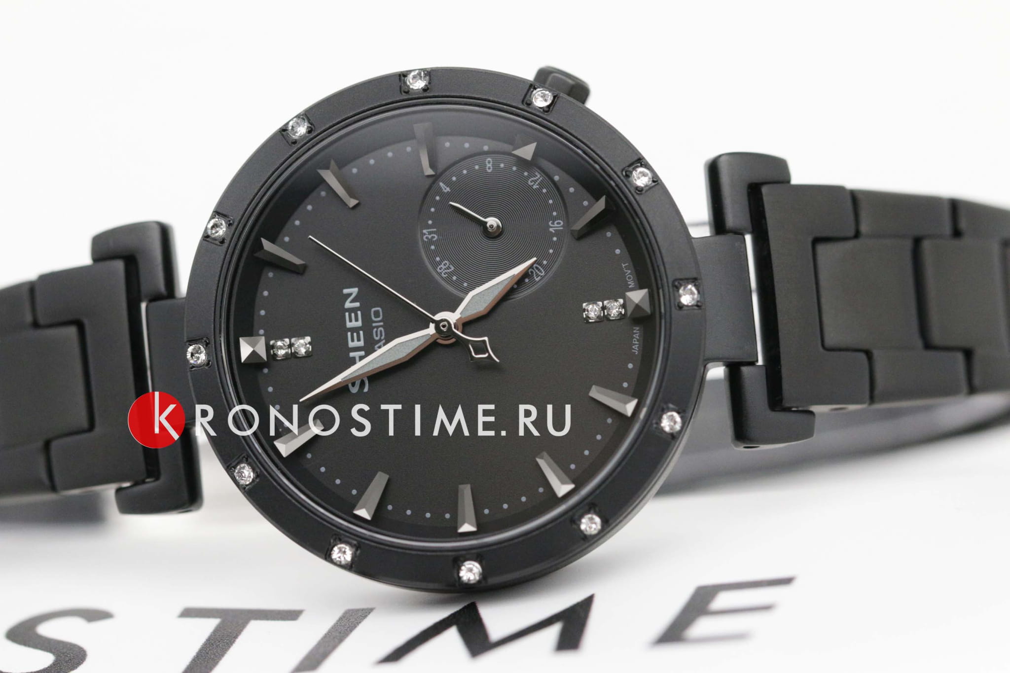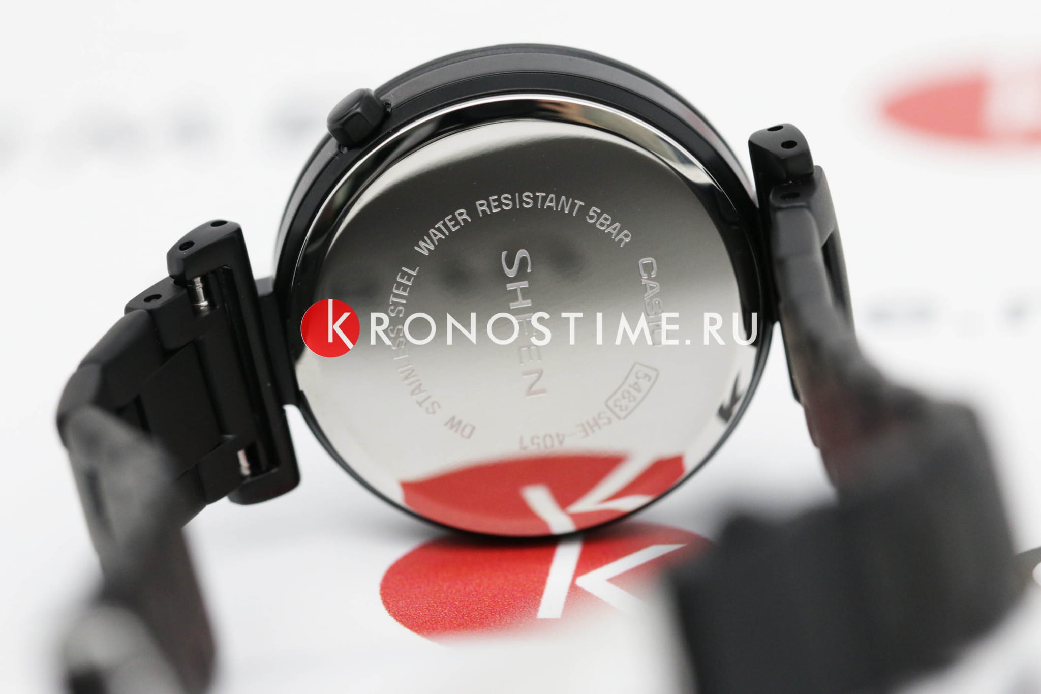 Японские женские часы Casio Sheen SHE-4051BD-1A, кварцевый механизм с высокой точностью. Класс водозащиты: 50 метров, позволит защитить корпус от случайных брызг или капель дождя. Корпус и браслет часов изготовлены из стали с IP-покрытиемIP-покрытиеМетод ионного напыления. Демонстрирует повышенную устойчивость к истиранию, окислению и химическим веществам. Под воздействием высокого давления и температуры около 1500°C молекулы металла надёжно соединяются с частицами корпуса часов. черного цвета. Центральные часовая, минутная и секундная стрелки. Отображение даты в малом циферблате. Заводная головка находится в положении 4 часа. Черный циферблат украшен кристаллами. Браслет с раскладной застёжкойРаскладная застёжкаТакой тип застёжки используется только на браслетах из металла. Она никогда не раскрывается полностью, происходит разделение на 2 и более частей. Раскладывающая застёжка снизит вероятность потери часов к минимуму..