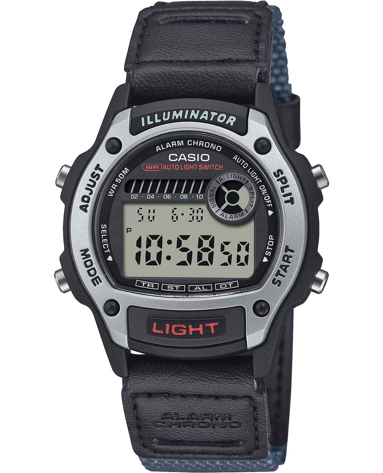 Спортивные японские мужские часы-хронографХронографФункция позволяет измерять отрезки времени с особой точностью: часы, минуты, секунды. Верным признаком хронографа является наличие на циферблате 3 дополнительных окошек-счётчиков. Casio Collection W-220HF-8A, кварцевый механизм с высокой точностью, органическое стекло. Изысканный корпус часов изготовлен из пластика. Светодиодная подсветкаСветодиодная подсветкаСветодиодная или LED-подсветка обеспечивает появление яркого холодного свечения за счёт LED-элементов - маленьких лампочек. Они потребляют минимальное количество энергии, чаще всего можно встретить 1 светодиод, в нижней части циферблата. освещает весь циферблат. Цвет подсветки: оранжевый. 12-ти и 24-х часовой формат времени. СекундомерСекундомерСекундоме́р — прибор, способный измерять интервалы времени с точностью до долей секунды. с точностью показаний 1/100с и временем измерения 24 ч. Сплит-хронографСплит-хронографИспользуется для измерения продолжительности нескольких временных отрезков, начинающихся одновременно, а заканчивающихся в разное время.. Функция второго часового поясаВторой часовой поясФункция, позволяющая отображать время двух часовых поясов одновременно., а также таймераТаймерОтсчитывает секунды в обратном направлении в заданном интервале времени., что делает часы функциональными. Батарейка рассчитана на 3 года. Класс водозащиты: 50 метров, позволит защитить корпус от случайных брызг или капель дождя. Ремешок тканевый с кожаными вставками, который изготавливается из возобновляемых органических ресурсов. Модель подчёркивает индивидуальность владельца и идеально подходит для повседневного образа. Лимитированная серия.