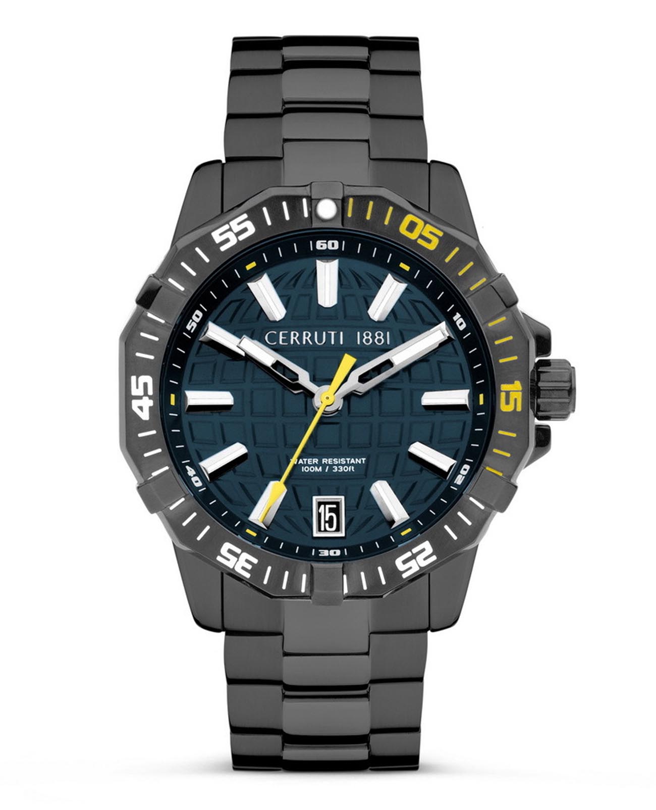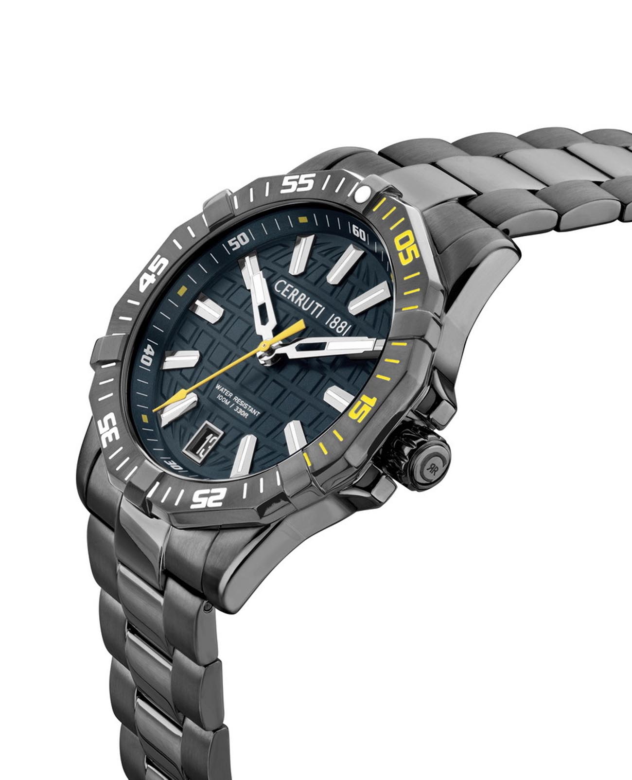 Французские мужские часы Cerruti 1881 Vallelaghi CIWGH0007507, кварцевый механизм с высокой точностью. Минеральное стеклоМинеральное стеклоМинеральное стекло представляет собой искусственно выращенный минерал кварца. Такое стекло отличается особой устойчивостью к повреждениям и царапинам. Уступает по некоторым качествам сапфировому стеклу. устойчивое к мелким механическим повреждениям. Корпус часов изготовлен из нержавеющей стали с IP-покрытиемIP-покрытиеМетод ионного напыления. Демонстрирует повышенную устойчивость к истиранию, окислению и химическим веществам. Под воздействием высокого давления и температуры около 1500°C молекулы металла надёжно соединяются с частицами корпуса часов.. Циферблат выполнен с метками в виде штрихов. Окошко даты находится в положении 6 часа. Стрелки и метки с люминесцентным покрытиемЛюминесцентное покрытиеПозволяет считывать показания времени в темноте. Производители наносят на стрелки, часовые индексы, безель или поверхность циферблата светонакопительный состав, дающий холодное свечение.. Класс водозащиты: 100 метров, позволит плавать, нырять и заниматься другими водными видами спорта. Стальной браслет с IP-покрытиемIP-покрытиеМетод ионного напыления. Демонстрирует повышенную устойчивость к истиранию, окислению и химическим веществам. Под воздействием высокого давления и температуры около 1500°C молекулы металла надёжно соединяются с частицами корпуса часов. на застёжке-бабочке с кнопкамиЗастёжка "бабочка"Такой вид застёжки дополняется предохранителями, помогающими избежать случайного раскрытия браслета. Обладают изящным исполнением. .