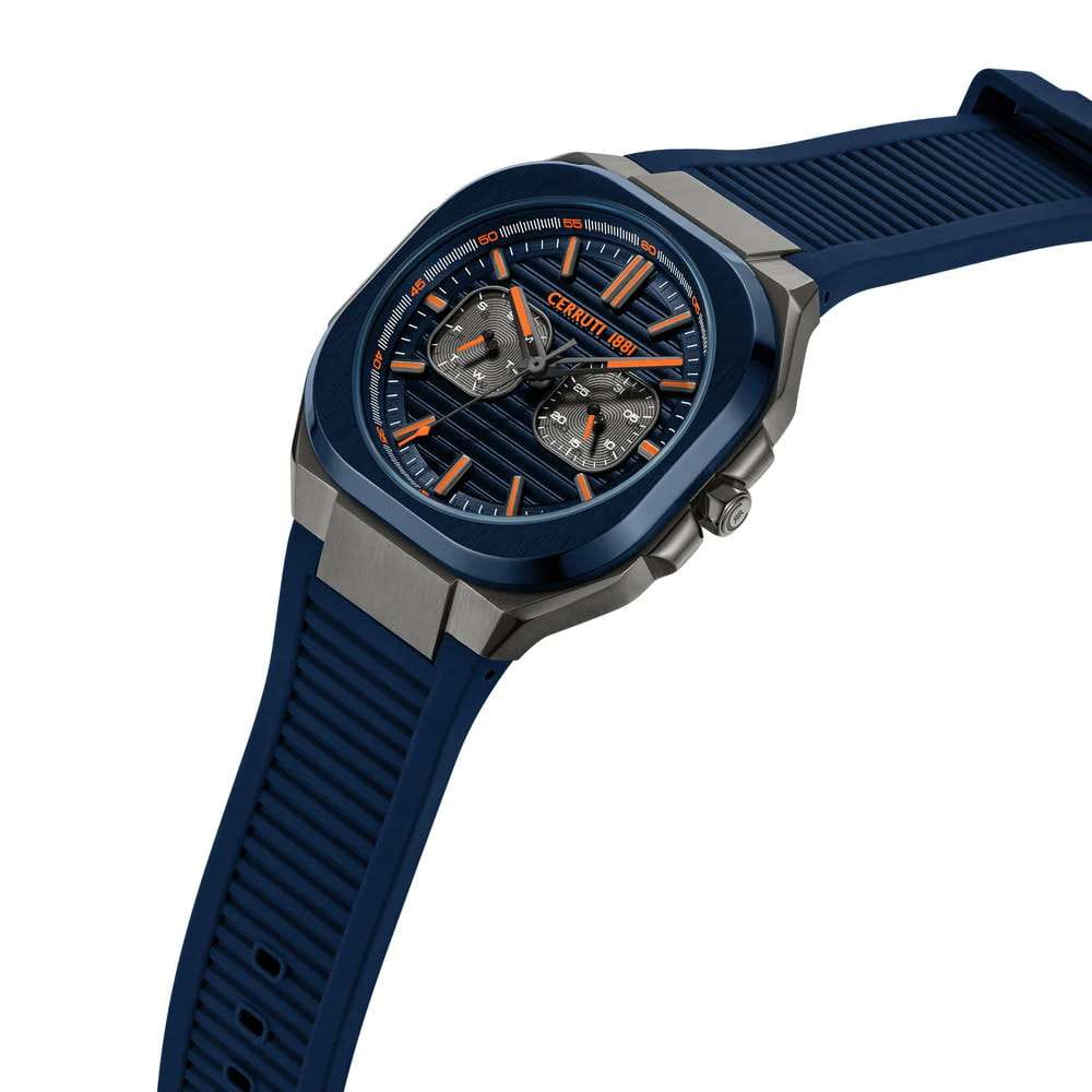 Мужские кварцевые часы Cerruti 1881 Leadri CIWGQ0073503 — лаконичный французский дизайн с практичным функционалом. Корпус из нержавеющей стали 316L с IP-покрытиемIP-покрытиеМетод ионного напыления. Демонстрирует повышенную устойчивость к истиранию, окислению и химическим веществам. Под воздействием высокого давления и температуры около 1500°C молекулы металла надёжно соединяются с частицами корпуса часов., диаметром 39 мм. Циферблат — синий, с штриховыми метками и индикацией даты, дня недели и месяца. Стекло — минеральноеМинеральное стеклоМинеральное стекло представляет собой искусственно выращенный минерал кварца. Такое стекло отличается особой устойчивостью к повреждениям и царапинам. Уступает по некоторым качествам сапфировому стеклу. с сапфировым покрытием. Стрелки и метки с люминесцентным покрытиемЛюминесцентное покрытиеПозволяет считывать показания времени в темноте. Производители наносят на стрелки, часовые индексы, безель или поверхность циферблата светонакопительный состав, дающий холодное свечение.. Ремешок силиконовый на стандартной застёжке. Водонепроницаемость 50 м.