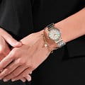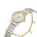 Французские женские часы с кристаллами Cerruti 1881 Corniglia CIWLG2226205, кварцевый механизм с высокой точностью. Часы с запоминающейся деталью, в виде дополнительной цепочки с подвесками. Минеральное стеклоМинеральное стеклоМинеральное стекло представляет собой искусственно выращенный минерал кварца. Такое стекло отличается особой устойчивостью к повреждениям и царапинам. Уступает по некоторым качествам сапфировому стеклу. устойчивое к мелким механическим повреждениям. Корпус часов изготовлен из стали с PVD-покрытиемPVDУльтратонкое покрытие наносится в технике вакуумного напыления, сочетает в себе нитрид титана особой прочности со слоем золота или оксида хрома. Несёт в себе декоративную или защитную функцию.. БезельБезельВнешний ободок, закрепляющий стекло. В спортивных часах так называется поворотное кольцо с делениями на циферблате, выполняет роль таймера – замеряет отрезки времени на шкале. Неподвижный безель – элемент декора. Однонаправленно вращающийся безель на дайверских часах позволяет фиксировать моменты погружения и выныривания на поверхность. украшен кристаллами. Циферблат украшен кристаллами, римские метки. Класс водозащиты: 30 метров, позволит защитить корпус от случайных брызг или капель дождя. Стальной браслет с частичным PVD-покрытиемPVDУльтратонкое покрытие наносится в технике вакуумного напыления, сочетает в себе нитрид титана особой прочности со слоем золота или оксида хрома. Несёт в себе декоративную или защитную функцию. на застёжке-бабочке с кнопкамиЗастёжка "бабочка"Такой вид застёжки дополняется предохранителями, помогающими избежать случайного раскрытия браслета. Обладают изящным исполнением. .