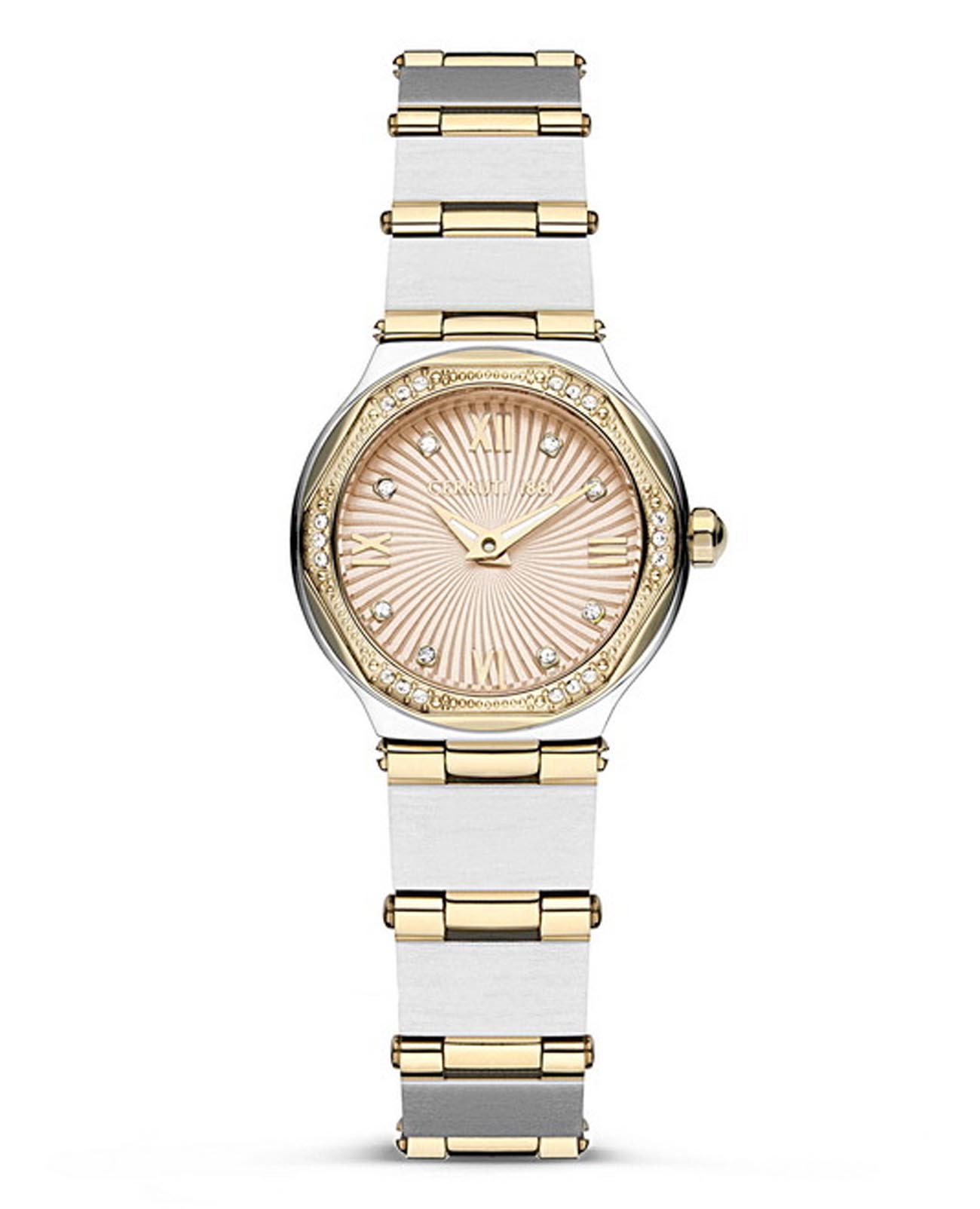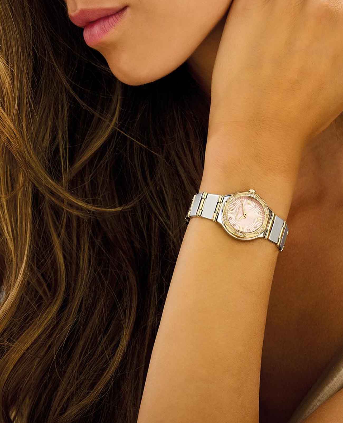 Французские женские часы с кристаллами Cerruti 1881 Rendinara CIWLH2225302, кварцевый механизм с высокой точностью. Минеральное стеклоМинеральное стеклоМинеральное стекло представляет собой искусственно выращенный минерал кварца. Такое стекло отличается особой устойчивостью к повреждениям и царапинам. Уступает по некоторым качествам сапфировому стеклу. устойчивое к мелким механическим повреждениям. Корпус часов изготовлен из стали. БезельБезельВнешний ободок, закрепляющий стекло. В спортивных часах так называется поворотное кольцо с делениями на циферблате, выполняет роль таймера – замеряет отрезки времени на шкале. Неподвижный безель – элемент декора. Однонаправленно вращающийся безель на дайверских часах позволяет фиксировать моменты погружения и выныривания на поверхность. с IP-покрытиемIP-покрытиеМетод ионного напыления. Демонстрирует повышенную устойчивость к истиранию, окислению и химическим веществам. Под воздействием высокого давления и температуры около 1500°C молекулы металла надёжно соединяются с частицами корпуса часов. и циферблат украшены кристаллами. Стрелки с люминесцентным покрытиемЛюминесцентное покрытиеПозволяет считывать показания времени в темноте. Производители наносят на стрелки, часовые индексы, безель или поверхность циферблата светонакопительный состав, дающий холодное свечение..