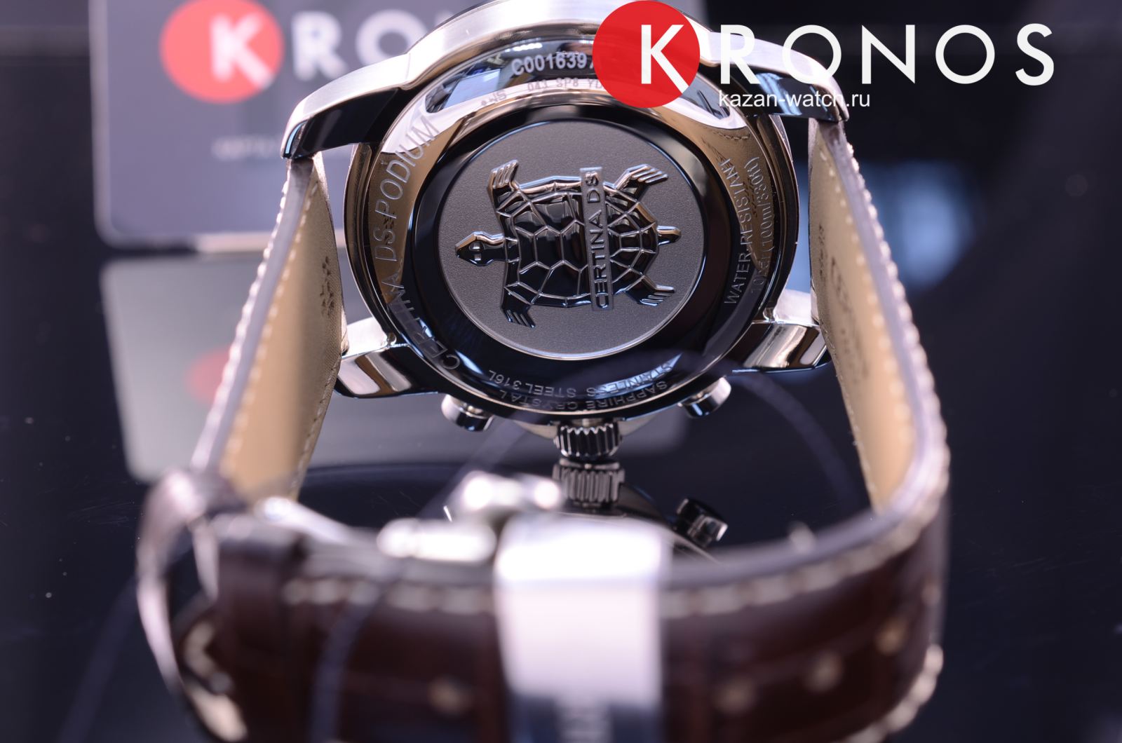 Часы Certina – это воплощение высочайшей точности и надежности часов, система DS расшифровывается Double Security; "двойная надежность". Беспрекословная точность и надежность, использование сложных технологий, инновационный подход в сочетании с традициями создания хронографов, которые марка пронесла через десятилетия, – все это позволяет компании предоставлять элитные, роскошные и стильные часы. На обратной стороне нанесено изображение черепахи в знак долговечности. Задняя крышка с повышенной прочностью, два кольца с уплотнением на заводной головке.