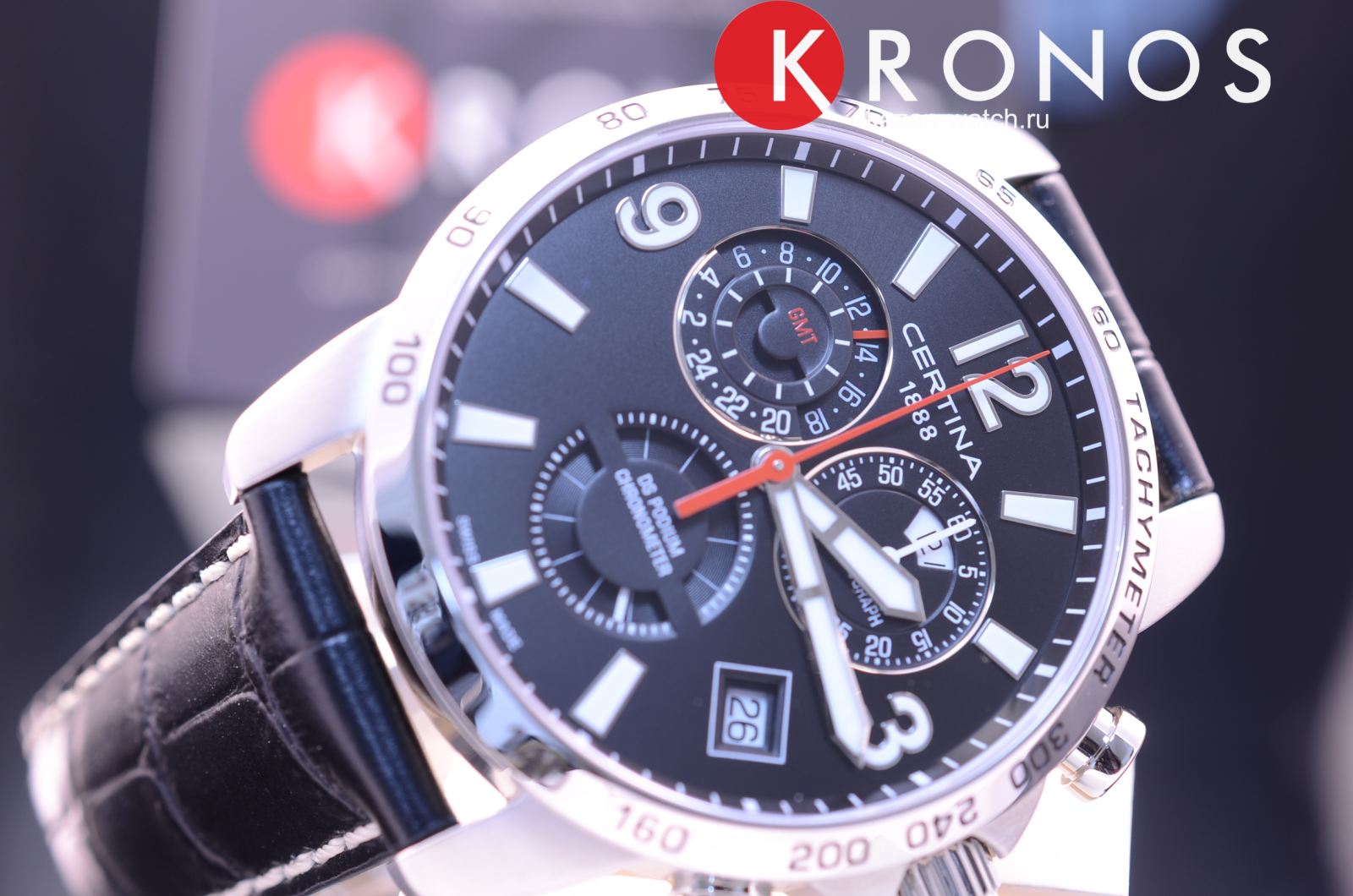 Наручные часы стали отображением спортивного стиля в классической элегантности, яркой деталью стали красные секундные стрелки. Брендовый хронографХронографФункция позволяет измерять отрезки времени с особой точностью: часы, минуты, секунды. Верным признаком хронографа является наличие на циферблате 3 дополнительных окошек-счётчиков. показывает время с абсолютной точностью благодаря швейцарскому кварцевому механизму ETA G10.962 Precidrive™Precidrive™Инновационный кварцевый механизм Certina. Часы, оснащённые этим швейцарским калибром, приравниваются к точности к сертифицированным хронометрам, точность хода составляет +/-10 секунд в год.. Такая особенность не осталась незамеченной, часы имеют сертификат хронометра COSCСертификат COSCОфициальный сертификат, подтверждающий то, что часы ходят с особо высокой точностью. Для получения документа часы подвергаются тестовым испытаниям, разработанным швейцарским институтом тестирования хронометров COSC. Допустимая норма для механических часов -4/+6 секунд в день, для кварцевых моделей +/- 0,07 секунд в день.. Чёрный ремешок из натуральной кожи. Система DS ConceptDS ConceptDouble Security Concept, обозначает двойную надёжность и безупречную точность часов Certina. Двойная система защиты подразумевает обеспечение максимальной устойчивости к ударам и высоких показателей водонепроницаемости.. Стрелки и метки с люминесцентным покрытиемЛюминесцентное покрытиеПозволяет считывать показания времени в темноте. Производители наносят на стрелки, часовые индексы, безель или поверхность циферблата светонакопительный состав, дающий холодное свечение.. Заводная головка с защитой. Сапфировое стекло. Степень водостойкости WR 100. Секундомер, GMTGMTОтображение времени второго часового пояса.Такая функция особенно актуальна для путешественников и бизнесменов,которые общаются с людьми из разных стран,теперь вы всегда будете знать,какой час у вашего партнёра или близкого человека., индикация числа, функция EOLEOLПредставляет собой систему, уведомляющую владельца часов о необходимости замены элемента питания. За 2 недели до полного разряда батарейки секундная стрелка перестаёт ходить чётко и начинает перепрыгивать на 3-4 деления.. Диаметр корпуса: 42 мм.