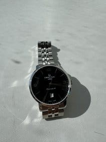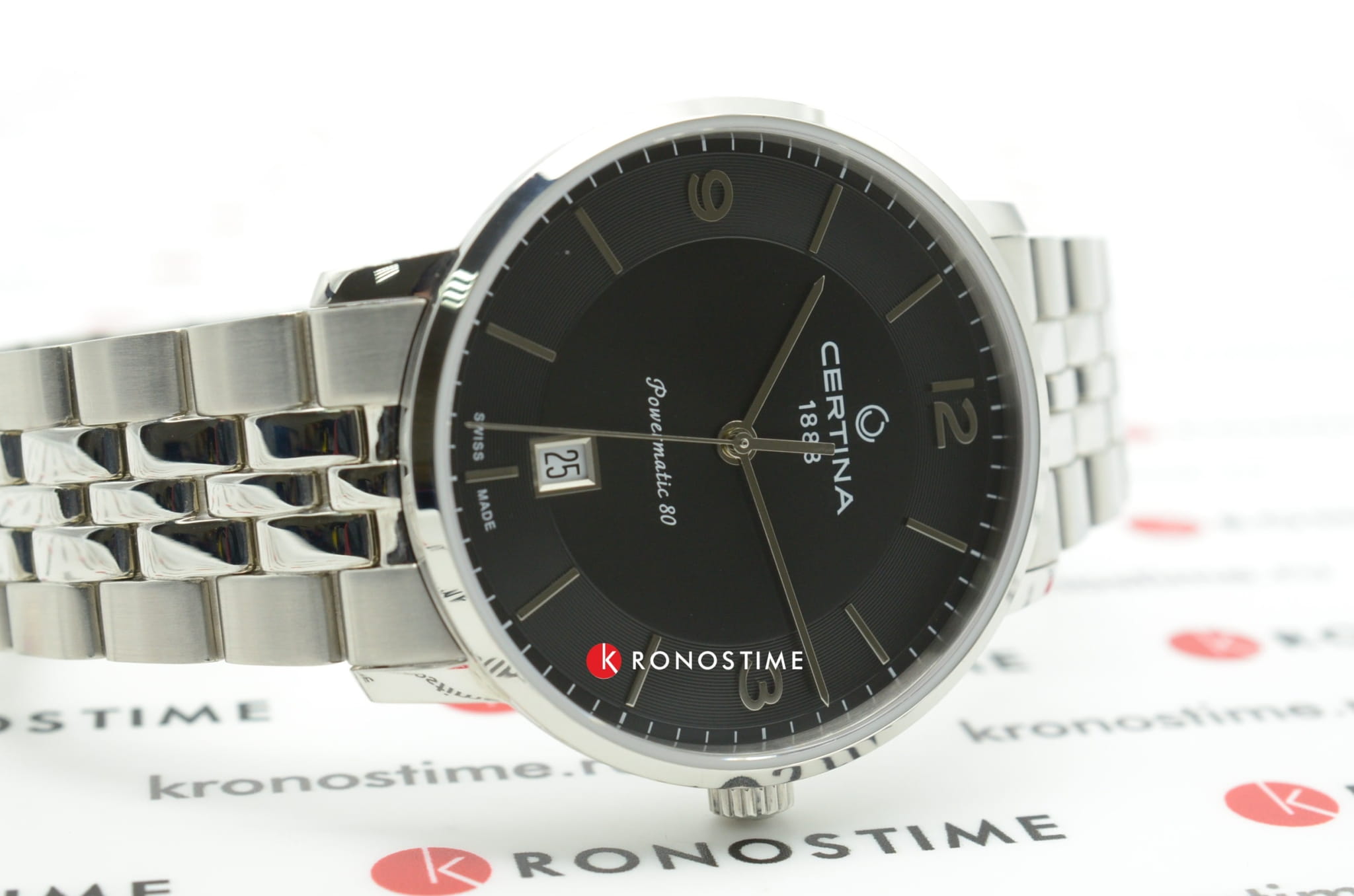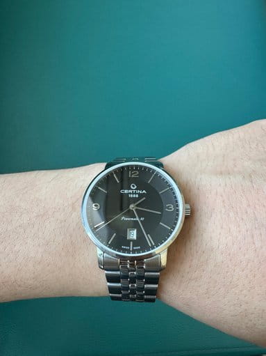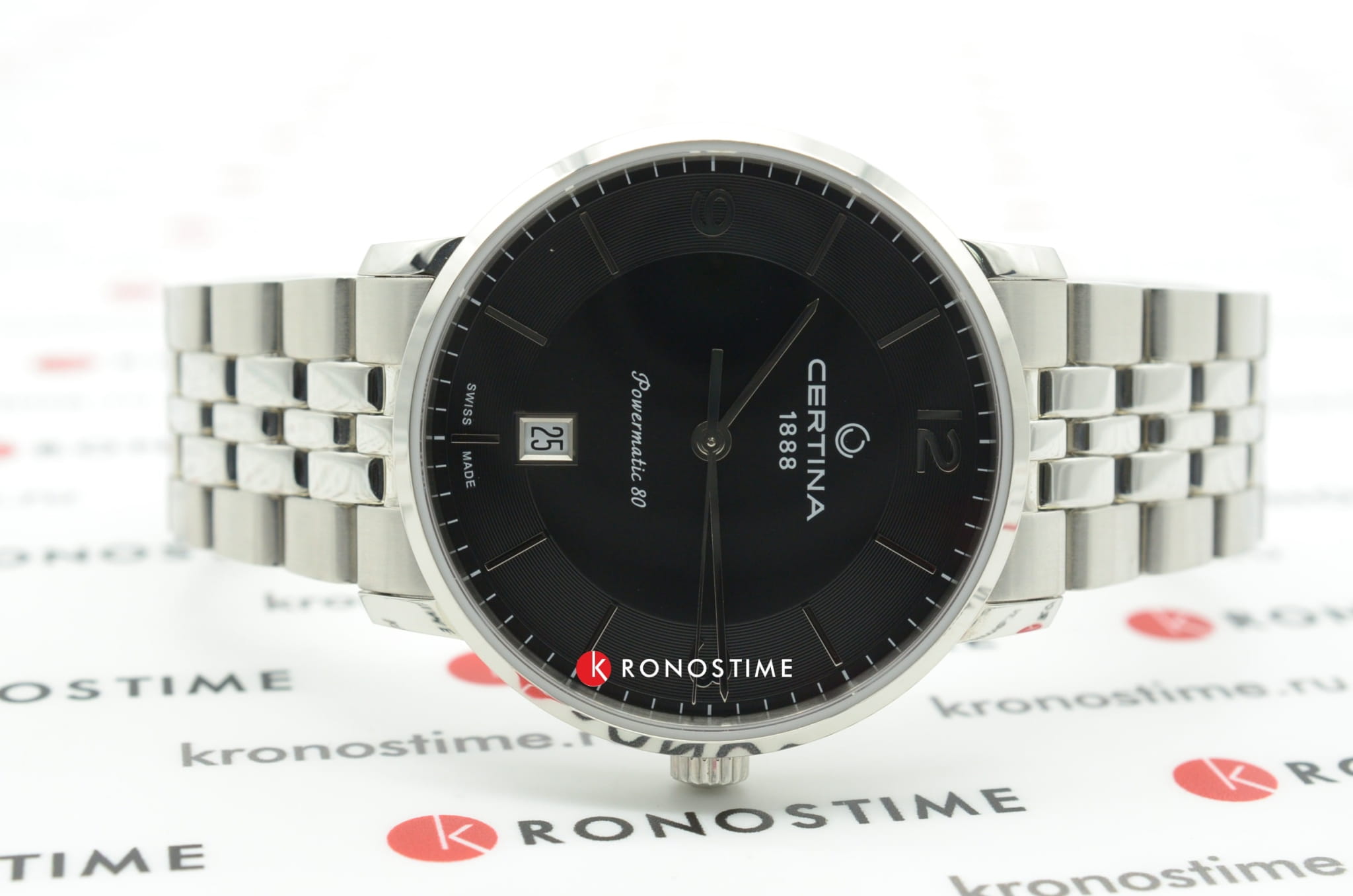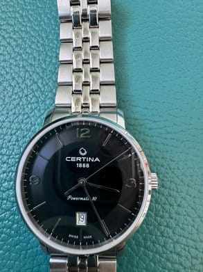 Чёрный минималистичный циферблат выдержан в строгом и сдержанном стиле. Привлекательно смотрится стальной браслет с рядами звеньев различного размера. Часы с автоматической системой завода оснащены пружинным калибром ETA Powermatic 80Powermatic 80Эксклюзивный калибр от швейцарской компании ETA с увеличенным запасом хода до 80 часов за счёт удлинённой заводной пружины. Характеризуется улучшенной системой спуска со сниженным трением., имеющим с 80-часовой запас хода. Прозрачная задняя крышка. Надёжный корпус из антикоррозионной стали 316L. Концепция DS ConceptDS ConceptDouble Security Concept, обозначает двойную надёжность и безупречную точность часов Certina. Двойная система защиты подразумевает обеспечение максимальной устойчивости к ударам и высоких показателей водонепроницаемости.. Сапфировое стекло. Водонепроницаемость 10 бар. . Апертура даты. Диаметр корпуса: 39 мм.