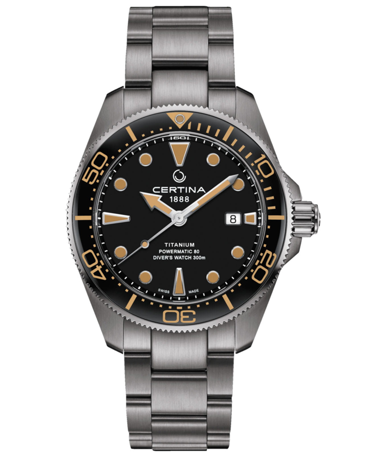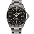 Браслет: титановый с раскладывающейся застёжкой и удлинением для дайверовУдлинение для дайверовЗастёжка с удлинением для дайверов представляет собой безопасное крепление, которое позволяет надевать часы поверх гидрокостюма. Гибкая застёжка удлиняется на 1-2 миллиметра..