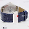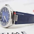 Синий кожаный ремешок с текстурой под крокодила и застёжкой-бабочкойЗастёжка "бабочка"Такой вид застёжки дополняется предохранителями, помогающими избежать случайного раскрытия браслета. Обладают изящным исполнением. подчёркивает изысканный облик и обеспечивает комфортное ношение. Водонепроницаемость до 100 метров делает модель подходящей для активного образа жизни.