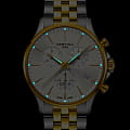 Высокая точность хода швейцарского кварцевого калибра ETA G15.212 AA Precidrive™Precidrive™Инновационный кварцевый механизм Certina. Часы, оснащённые этим швейцарским калибром, приравниваются к точности к сертифицированным хронометрам, точность хода составляет +/-10 секунд в год. отмечена сертификатом COSCСертификат COSCОфициальный сертификат, подтверждающий то, что часы ходят с особо высокой точностью. Для получения документа часы подвергаются тестовым испытаниям, разработанным швейцарским институтом тестирования хронометров COSC. Допустимая норма для механических часов -4/+6 секунд в день, для кварцевых моделей +/- 0,07 секунд в день.. Сапфировое стеклоСапфировое стеклоПрочный и надёжный материал из кристалла сапфира синтетического происхождения, характеризующийся особой твёрдостью и устойчивостью к царапинам и повреждениям. с покрытием «антиблик». ХронографХронографФункция позволяет измерять отрезки времени с особой точностью: часы, минуты, секунды. Верным признаком хронографа является наличие на циферблате 3 дополнительных окошек-счётчиков., секундомер, дата, EOLEOLПредставляет собой систему, уведомляющую владельца часов о необходимости замены элемента питания. За 2 недели до полного разряда батарейки секундная стрелка перестаёт ходить чётко и начинает перепрыгивать на 3-4 деления.. Концепция Двойной Надёжности DSDS ConceptDouble Security Concept, обозначает двойную надёжность и безупречную точность часов Certina. Двойная система защиты подразумевает обеспечение максимальной устойчивости к ударам и высоких показателей водонепроницаемости.. Стрелки с люминесцентным покрытиемЛюминесцентное покрытиеПозволяет считывать показания времени в темноте. Производители наносят на стрелки, часовые индексы, безель или поверхность циферблата светонакопительный состав, дающий холодное свечение.. Стальной браслет на застёжке-бабочке с кнопкамиЗастёжка "бабочка"Такой вид застёжки дополняется предохранителями, помогающими избежать случайного раскрытия браслета. Обладают изящным исполнением. .