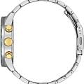 Citizen Chronograph AN3689-55X часы-хронографХронографФункция позволяет измерять отрезки времени с особой точностью: часы, минуты, секунды. Верным признаком хронографа является наличие на циферблате 3 дополнительных окошек-счётчиков. с секундомеромСекундомерСекундоме́р — прибор, способный измерять интервалы времени с точностью до долей секунды. спортивного дизайна с высоким уровнем водозащиты. Корпус из нержавеющей стали диаметром 44 мм идеально сбалансирован. Минеральное стеклоМинеральное стеклоМинеральное стекло представляет собой искусственно выращенный минерал кварца. Такое стекло отличается особой устойчивостью к повреждениям и царапинам. Уступает по некоторым качествам сапфировому стеклу. обеспечивает отличную защиту циферблата от царапин. Часы работают на основе кварцевого механизма. Стальной браслет на раскладной застёжкеРаскладная застёжкаТакой тип застёжки используется только на браслетах из металла. Она никогда не раскрывается полностью, происходит разделение на 2 и более частей. Раскладывающая застёжка снизит вероятность потери часов к минимуму. с частичным IP-покрытиемIP-покрытиеМетод ионного напыления. Демонстрирует повышенную устойчивость к истиранию, окислению и химическим веществам. Под воздействием высокого давления и температуры около 1500°C молекулы металла надёжно соединяются с частицами корпуса часов. идеально дополняют дизайн часов, обеспечивая комфортное ношение. Стрелки и метки на циферблате имеют люминесцентное покрытиеЛюминесцентное покрытиеПозволяет считывать показания времени в темноте. Производители наносят на стрелки, часовые индексы, безель или поверхность циферблата светонакопительный состав, дающий холодное свечение. позволяющее легко определять время даже в темноте. БезельБезельВнешний ободок, закрепляющий стекло. В спортивных часах так называется поворотное кольцо с делениями на циферблате, выполняет роль таймера – замеряет отрезки времени на шкале. Неподвижный безель – элемент декора. Однонаправленно вращающийся безель на дайверских часах позволяет фиксировать моменты погружения и выныривания на поверхность. с IP-покрытиемIP-покрытиеМетод ионного напыления. Демонстрирует повышенную устойчивость к истиранию, окислению и химическим веществам. Под воздействием высокого давления и температуры около 1500°C молекулы металла надёжно соединяются с частицами корпуса часов. и шкалой тахиметраТахиметрРазмеченная шкала, располагается на ободке или безеле часов. Тахиметр позволяет рассчитать скорость на определённом участке пути, расстояние измеряется в километрах или милях.. Секундомер с точностью 1с и временем измерения 12ч отображается центральной стрелкой. Окошко даты находится в положении 3 часа. Часы обладают впечатляющей водонепроницаемостью до 100WR, что делает их идеальными для повседневной носки.