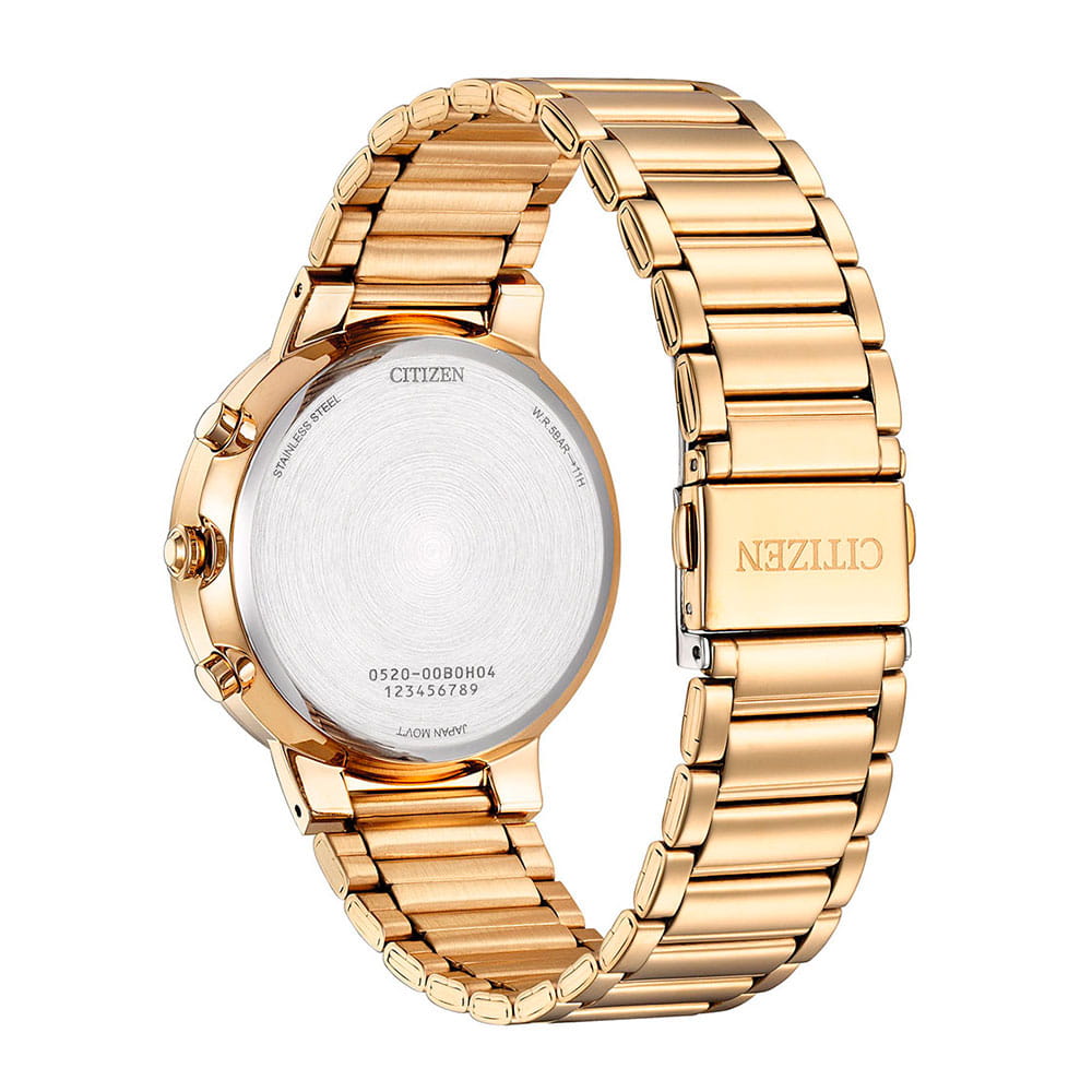 Citizen Chronograph AN8223-54L часы-хронографХронографФункция позволяет измерять отрезки времени с особой точностью: часы, минуты, секунды. Верным признаком хронографа является наличие на циферблате 3 дополнительных окошек-счётчиков. с секундомеромСекундомерСекундоме́р — прибор, способный измерять интервалы времени с точностью до долей секунды.. Корпус из нержавеющей стали с IP-покрытиемIP-покрытиеМетод ионного напыления. Демонстрирует повышенную устойчивость к истиранию, окислению и химическим веществам. Под воздействием высокого давления и температуры около 1500°C молекулы металла надёжно соединяются с частицами корпуса часов. диаметром 42 мм идеально сбалансирован. Минеральное стеклоМинеральное стеклоМинеральное стекло представляет собой искусственно выращенный минерал кварца. Такое стекло отличается особой устойчивостью к повреждениям и царапинам. Уступает по некоторым качествам сапфировому стеклу. обеспечивает отличную защиту циферблата от царапин. Часы работают на основе кварцевого механизма. Стальной браслет на раскладной застёжкеРаскладная застёжкаТакой тип застёжки используется только на браслетах из металла. Она никогда не раскрывается полностью, происходит разделение на 2 и более частей. Раскладывающая застёжка снизит вероятность потери часов к минимуму. идеально дополняют дизайн часов, обеспечивая комфортное ношение. Секундомер с точностью показаний 1c и временем измерения 60мин. Окошко даты находится между часовыми отметками 4 и 5. 12-ти и 24-х часовой формат времени отображается на отдельном циферблате. Циферблат с метками в виде штрихов выполнен по технологии Sunray (солнечные лучи). Заводная головка с защитой. Часы обладают водонепроницаемостью до 50WR, что делает их идеальными для повседневной носки.