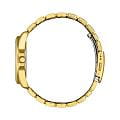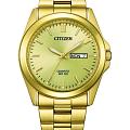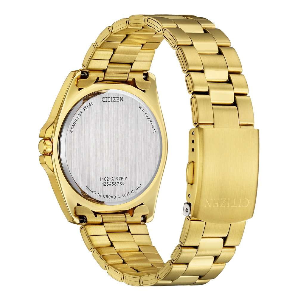 Citizen BF0583-59P — это классические японские часы с кварцевым механизмом, отличающиеся надежностью и стильным внешним видом. Корпус круглой формы выполнен из нержавеющей стали с элегантным золотистым IP-покрытиемIP-покрытиеМетод ионного напыления. Демонстрирует повышенную устойчивость к истиранию, окислению и химическим веществам. Под воздействием высокого давления и температуры около 1500°C молекулы металла надёжно соединяются с частицами корпуса часов. покрытием, диаметр корпуса составляет 39,4 мм, а толщина — 8 мм, что обеспечивает комфортное ношение на запястье. Золотистый циферблат украшен аккуратными индексами и оснащен окошком даты, расположенным в районе трех часов, что делает модель удобной для повседневного использования. Часы оснащены центральными стрелками для отображения часов, минут и секунд. Минеральное стеклоМинеральное стеклоМинеральное стекло представляет собой искусственно выращенный минерал кварца. Такое стекло отличается особой устойчивостью к повреждениям и царапинам. Уступает по некоторым качествам сапфировому стеклу. защищает циферблат от случайных царапин и повреждений, а водозащита уровня WR50 предохраняет механизм от воздействия брызг и дождя. Стрелки с люминесцентным покрытиемЛюминесцентное покрытиеПозволяет считывать показания времени в темноте. Производители наносят на стрелки, часовые индексы, безель или поверхность циферблата светонакопительный состав, дающий холодное свечение. обеспечивают отличную видимость в темноте. Стальной браслет с золотистым IP-покрытиемIP-покрытиеМетод ионного напыления. Демонстрирует повышенную устойчивость к истиранию, окислению и химическим веществам. Под воздействием высокого давления и температуры около 1500°C молекулы металла надёжно соединяются с частицами корпуса часов. и раскладной застёжкойРаскладная застёжкаТакой тип застёжки используется только на браслетах из металла. Она никогда не раскрывается полностью, происходит разделение на 2 и более частей. Раскладывающая застёжка снизит вероятность потери часов к минимуму. на кнопке надежно фиксирует часы на руке и подчеркивает их современный стиль.