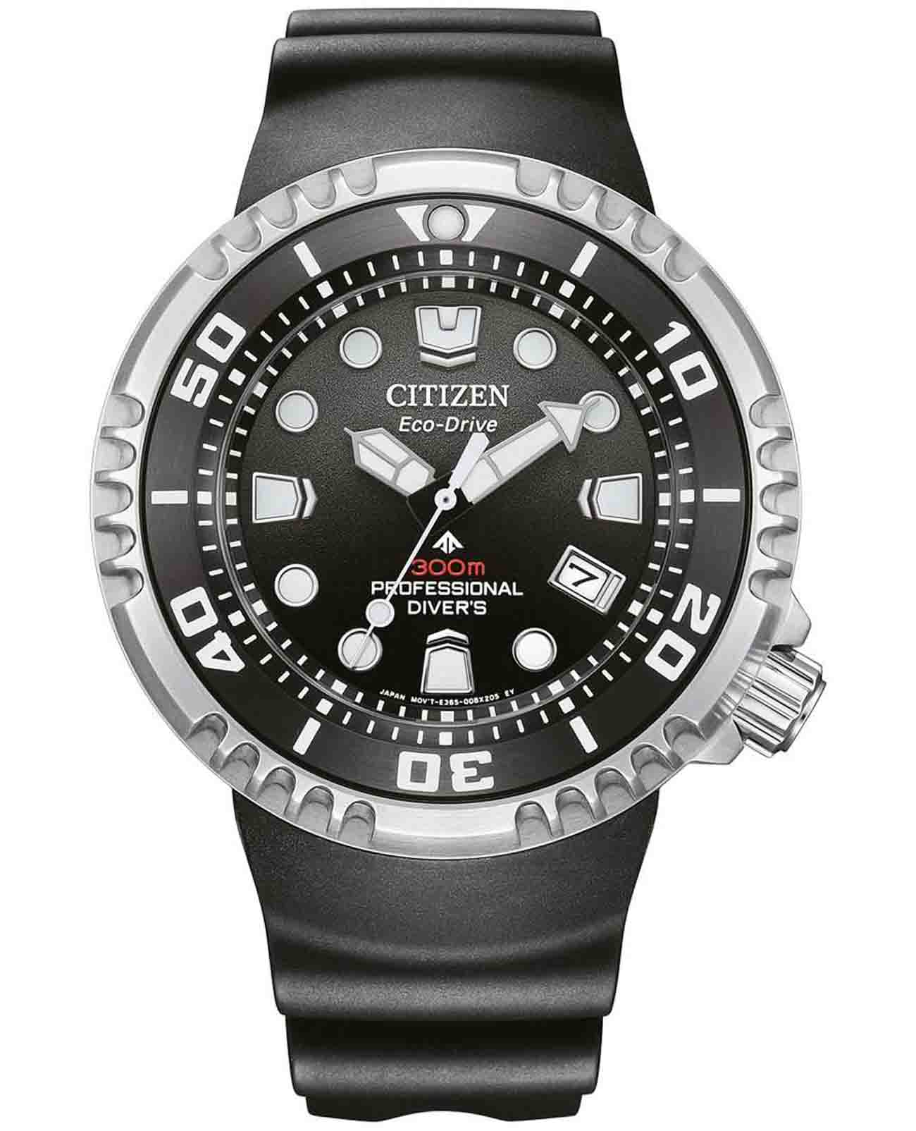 Мужские часы Citizen Promaster BN1024-01E спортивного дизайна с высоким уровнем водозащиты. Корпус из нержавеющей стали диаметром 46 мм идеально сбалансирован. Сапфировое стеклоСапфировое стеклоПрочный и надёжный материал из кристалла сапфира синтетического происхождения, характеризующийся особой твёрдостью и устойчивостью к царапинам и повреждениям. с антибликовым покрытием обеспечивает отличную защиту циферблата от царапин. Часы работают на основе кварцевого механизма, функция Eco-Drive (заряжается от любого источника света, не требующей замены батарейки). Каучуковый ремешок на стандартной застёжке идеально дополняют дизайн часов, обеспечивая комфортное ношение. Стрелки и метки на циферблате имеют люминесцентное покрытиеЛюминесцентное покрытиеПозволяет считывать показания времени в темноте. Производители наносят на стрелки, часовые индексы, безель или поверхность циферблата светонакопительный состав, дающий холодное свечение. позволяющее легко определять время даже в темноте. БезельБезельВнешний ободок, закрепляющий стекло. В спортивных часах так называется поворотное кольцо с делениями на циферблате, выполняет роль таймера – замеряет отрезки времени на шкале. Неподвижный безель – элемент декора. Однонаправленно вращающийся безель на дайверских часах позволяет фиксировать моменты погружения и выныривания на поверхность. с IP-покрытиемIP-покрытиеМетод ионного напыления. Демонстрирует повышенную устойчивость к истиранию, окислению и химическим веществам. Под воздействием высокого давления и температуры около 1500°C молекулы металла надёжно соединяются с частицами корпуса часов. вращается в одном направлении. Функция индикации заряда (EOL) и предотвращения перезарядки. Окошко даты находится в положении 4 часа. Часы обладают впечатляющей водонепроницаемостью до 300WR, что делает их идеальными для плавания, ныряния и погружений с аквалангом.