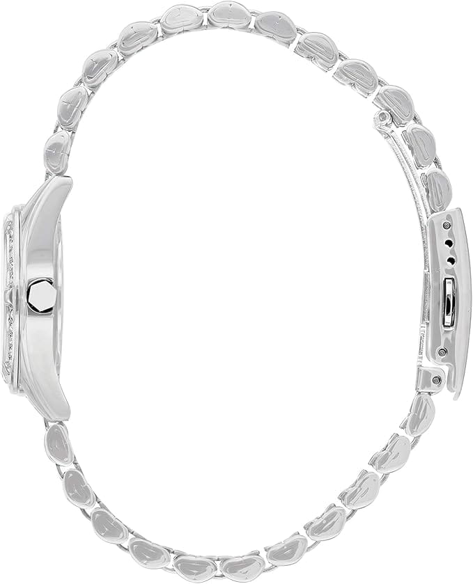 Часы Citizen EU6060-55D представляют собой элегантную модель, выполненную в Японии, сочетающую в себе современные технологии и утончённый дизайн. Корпус и браслет изготовлены из прочной нержавеющей стали, что обеспечивает долговечность и привлекательный внешний вид. Диаметр корпуса составляет 26 мм, что делает часы изящными и аккуратными на запястье. Особое внимание привлекает безельБезельВнешний ободок, закрепляющий стекло. В спортивных часах так называется поворотное кольцо с делениями на циферблате, выполняет роль таймера – замеряет отрезки времени на шкале. Неподвижный безель – элемент декора. Однонаправленно вращающийся безель на дайверских часах позволяет фиксировать моменты погружения и выныривания на поверхность., украшенный мерцающими кристаллами, которые придают часам особый шарм и изысканность. Стрелки с люминесцентным покрытиемЛюминесцентное покрытиеПозволяет считывать показания времени в темноте. Производители наносят на стрелки, часовые индексы, безель или поверхность циферблата светонакопительный состав, дающий холодное свечение.. Надёжный кварцевый механизм гарантирует точность хода, а водозащита уровня WR 50 позволяет не снимать часы при мытье рук или во время дождя. Циферблат украшен часовыми индексами в виде штрихов, а также оснащён окошком даты в позиции 3 часа, центральными стрелками часов, минут и секунд для удобного считывания времени и кристаллами. Минеральное стеклоМинеральное стеклоМинеральное стекло представляет собой искусственно выращенный минерал кварца. Такое стекло отличается особой устойчивостью к повреждениям и царапинам. Уступает по некоторым качествам сапфировому стеклу. устойчиво к появлению мелких царапин, сохраняя прозрачность и презентабельный вид. Стальной браслет с раскладной застёжкойРаскладная застёжкаТакой тип застёжки используется только на браслетах из металла. Она никогда не раскрывается полностью, происходит разделение на 2 и более частей. Раскладывающая застёжка снизит вероятность потери часов к минимуму. надежно фиксирует часы на запястье, обеспечивая комфорт при ежедневном ношении.