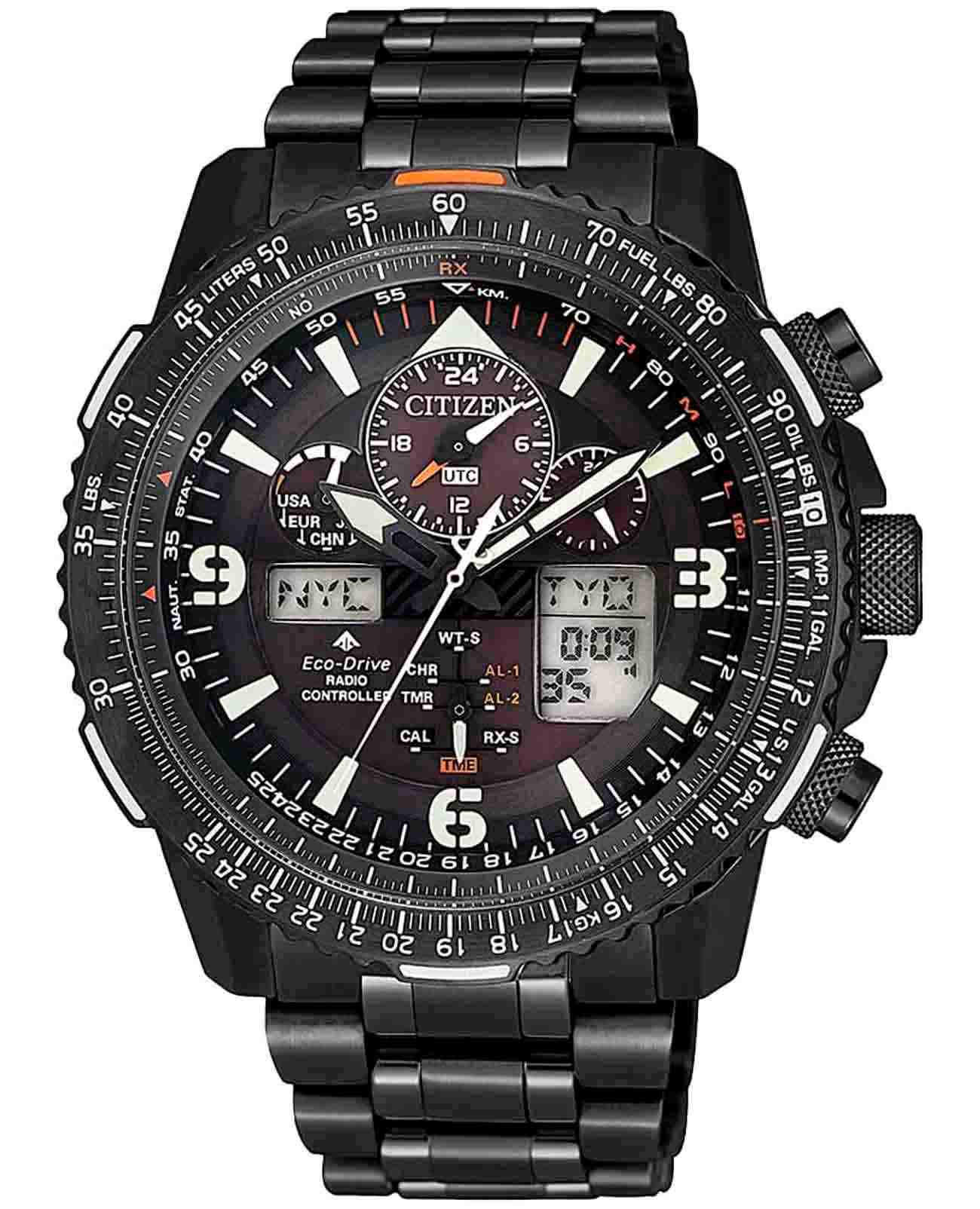 Citizen Promaster JY8085-81E часы-хронографХронографФункция позволяет измерять отрезки времени с особой точностью: часы, минуты, секунды. Верным признаком хронографа является наличие на циферблате 3 дополнительных окошек-счётчиков. с секундомеромСекундомерСекундоме́р — прибор, способный измерять интервалы времени с точностью до долей секунды. спортивного дизайна с высоким уровнем водозащиты. Корпус из нержавеющей стали диаметром 45,4 мм идеально сбалансирован. Сапфировое стеклоСапфировое стеклоПрочный и надёжный материал из кристалла сапфира синтетического происхождения, характеризующийся особой твёрдостью и устойчивостью к царапинам и повреждениям. с антибликовым покрытием обеспечивает отличную защиту циферблата от царапин. Часы работают на основе кварцевого механизма, питание от солнечной энергии. Стальной браслет на раскладной застёжкеРаскладная застёжкаТакой тип застёжки используется только на браслетах из металла. Она никогда не раскрывается полностью, происходит разделение на 2 и более частей. Раскладывающая застёжка снизит вероятность потери часов к минимуму. идеально дополняют дизайн часов, обеспечивая комфортное ношение. Стрелки и метки на циферблате имеют люминесцентное покрытиеЛюминесцентное покрытиеПозволяет считывать показания времени в темноте. Производители наносят на стрелки, часовые индексы, безель или поверхность циферблата светонакопительный состав, дающий холодное свечение. позволяющее легко определять время даже в темноте. Поворотный безельБезельВнешний ободок, закрепляющий стекло. В спортивных часах так называется поворотное кольцо с делениями на циферблате, выполняет роль таймера – замеряет отрезки времени на шкале. Неподвижный безель – элемент декора. Однонаправленно вращающийся безель на дайверских часах позволяет фиксировать моменты погружения и выныривания на поверхность. с IP-покрытиемIP-покрытиеМетод ионного напыления. Демонстрирует повышенную устойчивость к истиранию, окислению и химическим веществам. Под воздействием высокого давления и температуры около 1500°C молекулы металла надёжно соединяются с частицами корпуса часов.. Автоматический прием сигналов от радиовышек, расположенных в различных точках земного шара, которые передают временные сигналы от определенных атомных часов. Коррекция текущего времени радиосигналом на территории почти всей Европы, США, Японии и Китая. Функция индикации заряда (EOL) и предотвращения перезарядки. Мировое времяМировое время Полезное часовое усложнение, отображающее время в основных городах и известных областях по всему миру, оно связано с часовыми поясами, удобно для путешественников и бизнесменов. - 43 города (29 часовых поясов), переход на зимнее и летнее время. Всемирное координированное время UTCUTCВсемирное кординационное время, не имеющее привязки к географическому положению Гринвича, основывается на атомном отсчёте времени. Регулировка времени осуществляется более точно, чем устаревшее GMT.