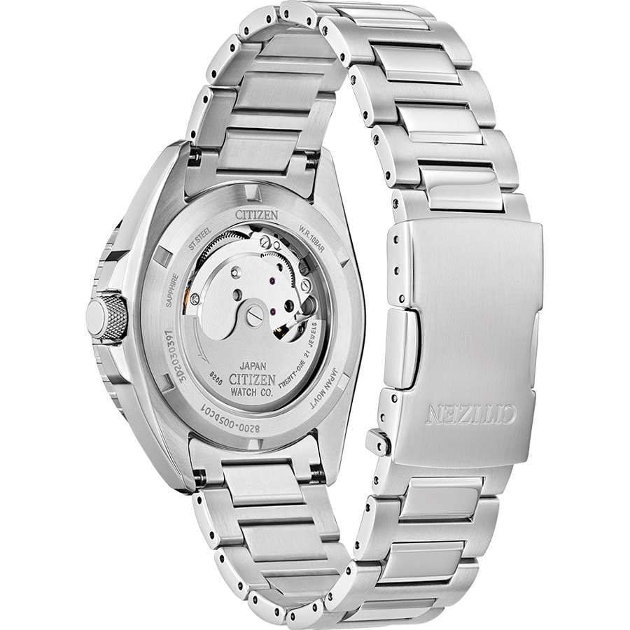 Мужские наручные часы Citizen Automatic NH7530-52M - сочетание спортивного стиля и повседневной функциональности. Корпус из нержавеющей стали диаметром 42 мм идеально сбалансирован. Сапфировое стеклоСапфировое стеклоПрочный и надёжный материал из кристалла сапфира синтетического происхождения, характеризующийся особой твёрдостью и устойчивостью к царапинам и повреждениям. обеспечивает отличную защиту циферблата от царапин. Механические часы с автоподзаводом. Стальной браслет на раскладной застёжкеРаскладная застёжкаТакой тип застёжки используется только на браслетах из металла. Она никогда не раскрывается полностью, происходит разделение на 2 и более частей. Раскладывающая застёжка снизит вероятность потери часов к минимуму. идеально дополняют дизайн часов, обеспечивая комфортное ношение. Окошко даты и дня недели в положении 3 часа. Стрелки и метки с люминесцентным покрытиемЛюминесцентное покрытиеПозволяет считывать показания времени в темноте. Производители наносят на стрелки, часовые индексы, безель или поверхность циферблата светонакопительный состав, дающий холодное свечение.. Однонаправленный вращающийся безельБезельВнешний ободок, закрепляющий стекло. В спортивных часах так называется поворотное кольцо с делениями на циферблате, выполняет роль таймера – замеряет отрезки времени на шкале. Неподвижный безель – элемент декора. Однонаправленно вращающийся безель на дайверских часах позволяет фиксировать моменты погружения и выныривания на поверхность. с IP-покрытиемIP-покрытиеМетод ионного напыления. Демонстрирует повышенную устойчивость к истиранию, окислению и химическим веществам. Под воздействием высокого давления и температуры около 1500°C молекулы металла надёжно соединяются с частицами корпуса часов.. Завинчивающаяся прозрачная задняя крышка. Циферблат с часовыми индексами в виде штрихов и точек. Часы обладают водонепроницаемостью до 100WR, что делает их идеальными для повседневной носки.