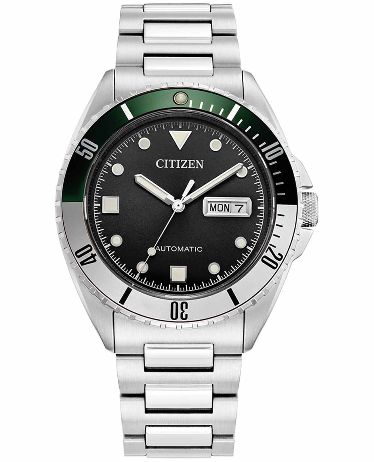 Мужские наручные часы Citizen Automatic NH7531-50E - сочетание спортивного стиля и повседневной функциональности. Корпус из нержавеющей стали диаметром 42 мм идеально сбалансирован. Сапфировое стеклоСапфировое стеклоПрочный и надёжный материал из кристалла сапфира синтетического происхождения, характеризующийся особой твёрдостью и устойчивостью к царапинам и повреждениям. обеспечивает отличную защиту циферблата от царапин. Механические часы с автоподзаводом. Стальной браслет на раскладной застёжкеРаскладная застёжкаТакой тип застёжки используется только на браслетах из металла. Она никогда не раскрывается полностью, происходит разделение на 2 и более частей. Раскладывающая застёжка снизит вероятность потери часов к минимуму. идеально дополняют дизайн часов, обеспечивая комфортное ношение. Окошко даты и дня недели в положении 3 часа. Стрелки и метки с люминесцентным покрытиемЛюминесцентное покрытиеПозволяет считывать показания времени в темноте. Производители наносят на стрелки, часовые индексы, безель или поверхность циферблата светонакопительный состав, дающий холодное свечение.. Однонаправленный вращающийся безельБезельВнешний ободок, закрепляющий стекло. В спортивных часах так называется поворотное кольцо с делениями на циферблате, выполняет роль таймера – замеряет отрезки времени на шкале. Неподвижный безель – элемент декора. Однонаправленно вращающийся безель на дайверских часах позволяет фиксировать моменты погружения и выныривания на поверхность. с IP-покрытиемIP-покрытиеМетод ионного напыления. Демонстрирует повышенную устойчивость к истиранию, окислению и химическим веществам. Под воздействием высокого давления и температуры около 1500°C молекулы металла надёжно соединяются с частицами корпуса часов.. Завинчивающаяся прозрачная задняя крышка. Циферблат с часовыми индексами в виде штрихов и точек. Часы обладают водонепроницаемостью до 100WR, что делает их идеальными для повседневной носки.