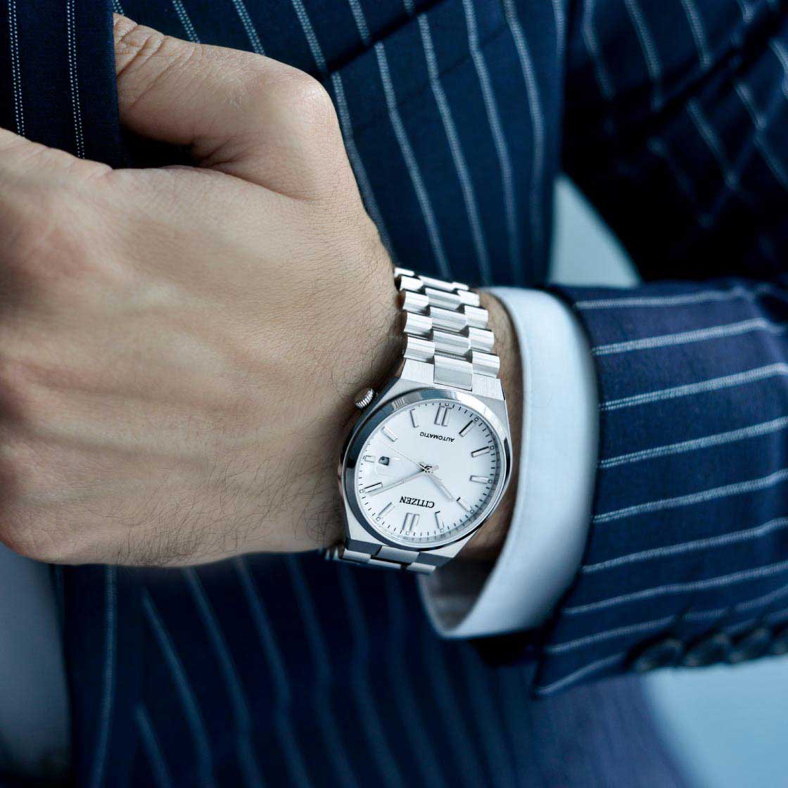 Мужские часы Citizen Tsuyosa NJ0150-81A - идеальное сочетание классического и современного дизайна. Корпус из нержавеющей стали диаметром 40 мм идеально сбалансирован. Сапфировое стеклоСапфировое стеклоПрочный и надёжный материал из кристалла сапфира синтетического происхождения, характеризующийся особой твёрдостью и устойчивостью к царапинам и повреждениям. обеспечивает отличную защиту циферблата от царапин. Механические часы с автоподзаводом. Стальной браслет на раскладной застёжкеРаскладная застёжкаТакой тип застёжки используется только на браслетах из металла. Она никогда не раскрывается полностью, происходит разделение на 2 и более частей. Раскладывающая застёжка снизит вероятность потери часов к минимуму. идеально дополняют дизайн часов, обеспечивая комфортное ношение. Метки в виде штрихов. Окошко даты в положении 3 часа. Стрелки и метки с люминесцентным покрытиемЛюминесцентное покрытиеПозволяет считывать показания времени в темноте. Производители наносят на стрелки, часовые индексы, безель или поверхность циферблата светонакопительный состав, дающий холодное свечение.. В механизме 21 камень, частота 21600 полуколебаний в час. Запас хода 42 часа. Рифленая заводная головка находится в положении 4 часа. Завинчивающаяся прозрачная задняя крышка. Часы обладают водонепроницаемостью до 50WR, что делает их идеальными для повседневной носки.