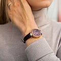 Женские часы Cover Moon CO196.07  - это аксессуар для истинных леди из коллекции Fly Me To The Moon. Часы работают на кварцевом калибре ETA. Циферблат выполнен в коричневом перламутровом исполнении, создавая игру света при каждом движении запястья, и украшен 11 кристаллами Swarovski, которые служат часовым индикатором, добавляя блики света и роскоши. Кроме того, модель имеет окно фаз Луны на «6 часах» и апертуру даты на «3 часах», что делает ее функциональной для ценителей астрономических усложнений. Часы имеют 32-миллиметровый корпус из нержавеющей стали с PVD-покрытиемPVDУльтратонкое покрытие наносится в технике вакуумного напыления, сочетает в себе нитрид титана особой прочности со слоем золота или оксида хрома. Несёт в себе декоративную или защитную функцию. цвета розового золота.  Водонепроницаемость часов достигает 5 атмосфер (WR 50), что позволяет использовать их в повседневной жизни, однако не рекомендуется для контакта с водой во время плавания или дайвинга. Маркировка «Swiss Made». Кожаный ремешок на классической застежке.