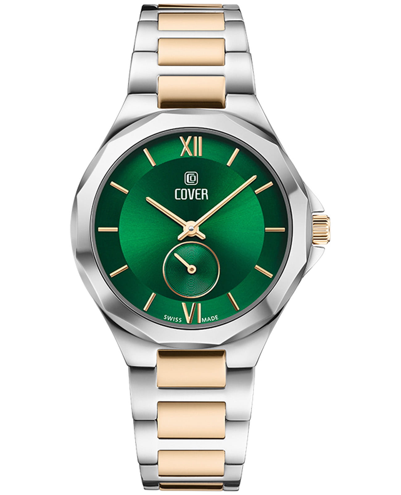 Женские швейцарские часы COVER CO211.04 — это изысканный повседневный аксессуар с оригинальным 12-угольным стальным корпусом из коллекции Cardea. Часы оснащены кварцевым калибром ETA 902.501. Зеленый циферблат с круговой сатинированной отделкой и узором Sunray придает им элегантный вид. Накладные индексы и римские цифры VI и XII добавляют стильный акцент. Малая секундная стрелка расположена в положении «6 часов». Интегрированный браслет на раскладной застёжкеРаскладная застёжкаТакой тип застёжки используется только на браслетах из металла. Она никогда не раскрывается полностью, происходит разделение на 2 и более частей. Раскладывающая застёжка снизит вероятность потери часов к минимуму. обеспечивает комфорт и надежность. Часы имеют маркировку «Swiss Made», что подтверждает их высокое качество и точность.