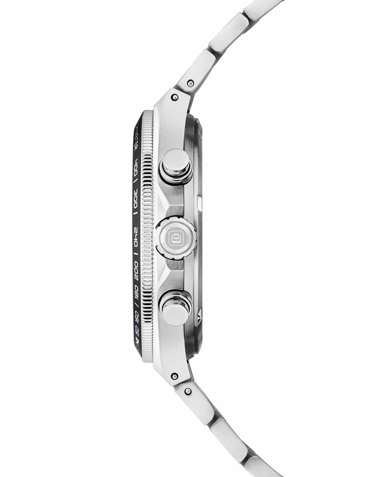 Мужские наручные часы-хронографХронографФункция позволяет измерять отрезки времени с особой точностью: часы, минуты, секунды. Верным признаком хронографа является наличие на циферблате 3 дополнительных окошек-счётчиков. Cover CO212.01 из коллекции Iconosteel сочетают в себе классический дизайн и надежность современных технологий. Часы оснащены кварцевым механизмом с модулем хронографа Ronda 5040.D, они обеспечивают точность и надежность в каждом моменте. Модель обладает круглым корпусом диаметром 41 мм, изготовленным из нержавеющей стали, что обеспечивает высокую устойчивость к внешним воздействиям. Браслет выполнен из нержавеющей стали с раскладной застёжкойРаскладная застёжкаТакой тип застёжки используется только на браслетах из металла. Она никогда не раскрывается полностью, происходит разделение на 2 и более частей. Раскладывающая застёжка снизит вероятность потери часов к минимуму., гарантирующей комфортное ношение и безопасность. Черный циферблат оснащен окном даты на «4 часах» и стрелками с люминесцентным покрытиемЛюминесцентное покрытиеПозволяет считывать показания времени в темноте. Производители наносят на стрелки, часовые индексы, безель или поверхность циферблата светонакопительный состав, дающий холодное свечение.. Для защиты используется сапфировое стеклоСапфировое стеклоПрочный и надёжный материал из кристалла сапфира синтетического происхождения, характеризующийся особой твёрдостью и устойчивостью к царапинам и повреждениям., обеспечивающее прочную защиту от царапин и антибликовый эффект. На черный безельБезельВнешний ободок, закрепляющий стекло. В спортивных часах так называется поворотное кольцо с делениями на циферблате, выполняет роль таймера – замеряет отрезки времени на шкале. Неподвижный безель – элемент декора. Однонаправленно вращающийся безель на дайверских часах позволяет фиксировать моменты погружения и выныривания на поверхность. с PVD-покрытиемPVDУльтратонкое покрытие наносится в технике вакуумного напыления, сочетает в себе нитрид титана особой прочности со слоем золота или оксида хрома. Несёт в себе декоративную или защитную функцию. нанесена шкала тахиметраТахиметрРазмеченная шкала, располагается на ободке или безеле часов. Тахиметр позволяет рассчитать скорость на определённом участке пути, расстояние измеряется в километрах или милях.. Модель также является хронографом, оснащенным функцией секундомераСекундомерСекундоме́р — прибор, способный измерять интервалы времени с точностью до долей секунды., делая ее идеальной для активного образа жизни. Водонепроницаемость часов достигает 10 атмосфер (100 метров), что позволяет использовать их во время плавания и других водных видов спорта, однако не рекомендуется для глубоководного дайвинга.