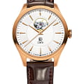 Часы COVER COA4.16 из коллекции  Aragon Open Heart Automatict – элегантная модель швейцарского производства.  Эти часы станут идеальным аксессуаром для мужчин, которые ценят стиль и качество. Автоматический калибр Sellita SW200 обеспечивает надёжную работу механизма. Центральная область белого циферблата декорирована узором Sunray, периферийная, с накладными гранеными индексами, – круговым гильоше. Сквозь большую апертуру на «12 часах» можно увидеть колесо баланса. БезельБезельВнешний ободок, закрепляющий стекло. В спортивных часах так называется поворотное кольцо с делениями на циферблате, выполняет роль таймера – замеряет отрезки времени на шкале. Неподвижный безель – элемент декора. Однонаправленно вращающийся безель на дайверских часах позволяет фиксировать моменты погружения и выныривания на поверхность. изготовлен из нержавеющей стали с PVDPVDУльтратонкое покрытие наносится в технике вакуумного напыления, сочетает в себе нитрид титана особой прочности со слоем золота или оксида хрома. Несёт в себе декоративную или защитную функцию. покрытием золотого цвета, корпус имеет диаметр 41 мм.  Сапфировое стеклоСапфировое стеклоПрочный и надёжный материал из кристалла сапфира синтетического происхождения, характеризующийся особой твёрдостью и устойчивостью к царапинам и повреждениям. защищает поверхность от повреждений.  Коричневый кожаный ремешок с классической застежкой обеспечивает надежную фиксацию и удобство в носке. Водозащита 100 метров делает часы практичными для повседневного использования Эти часы идеально подойдут для светских раутов, бизнес-встреч и других важных событий, подчеркивая ваш статус.