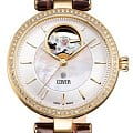 Часы COVER COA9.05 из коллекции Concerta Open Heart – элегантная модель швейцарского производства. Корпус выполнен из нержавеющей стали золотого цвета. Центральная область циферблата – белый перламутр, периферийная – круговое гильоше. Тонкий безельБезельВнешний ободок, закрепляющий стекло. В спортивных часах так называется поворотное кольцо с делениями на циферблате, выполняет роль таймера – замеряет отрезки времени на шкале. Неподвижный безель – элемент декора. Однонаправленно вращающийся безель на дайверских часах позволяет фиксировать моменты погружения и выныривания на поверхность. с покрытием PVDPVDУльтратонкое покрытие наносится в технике вакуумного напыления, сочетает в себе нитрид титана особой прочности со слоем золота или оксида хрома. Несёт в себе декоративную или защитную функцию. инкрустирован кристаллами Swarovski подчеркивает изысканный стиль. Сапфировое стеклоСапфировое стеклоПрочный и надёжный материал из кристалла сапфира синтетического происхождения, характеризующийся особой твёрдостью и устойчивостью к царапинам и повреждениям. защищает поверхность от повреждений. Водозащита 100 метров делает часы практичными для повседневного использования. Диаметр корпуса – 35 мм. Коричневый кожаный ремешок с классической застежкой обеспечивает надежную фиксацию и удобство в носке.