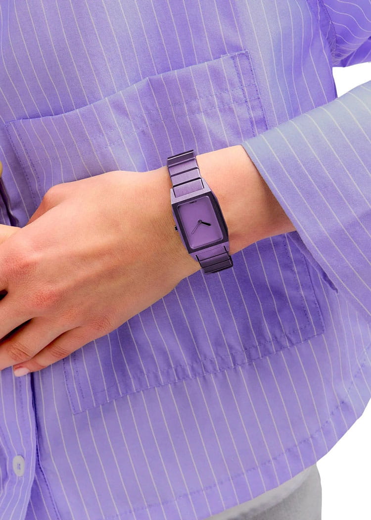 Часы D1 Milano Aura Studio 75 ARBU05 — это уникальные кварцевые часы, которые подчеркнут ваш изысканный стиль. Эти наручные часы с эффектным монохромным дизайном станут выразительным акцентом вашего образа. Изысканный корпус из стали 316L с PVD-покрытиемPVDУльтратонкое покрытие наносится в технике вакуумного напыления, сочетает в себе нитрид титана особой прочности со слоем золота или оксида хрома. Несёт в себе декоративную или защитную функцию. диаметром 23 мм придает часам современный и утонченный вид. Фиолетовый циферблат и фиолетовые стрелки создают стильный контраст, подчёркивая элегантность модели. Задняя крышка закреплена на 4-х винтах. Стальной браслет с PVD-покрытиемPVDУльтратонкое покрытие наносится в технике вакуумного напыления, сочетает в себе нитрид титана особой прочности со слоем золота или оксида хрома. Несёт в себе декоративную или защитную функцию. с застёжкой «бабочка»Застёжка "бабочка"Такой вид застёжки дополняется предохранителями, помогающими избежать случайного раскрытия браслета. Обладают изящным исполнением. обеспечивает надежность и комфорт в повседневном использовании. Сапфировое стеклоСапфировое стеклоПрочный и надёжный материал из кристалла сапфира синтетического происхождения, характеризующийся особой твёрдостью и устойчивостью к царапинам и повреждениям. с антибликовым покрытиемАнтибликовое покрытиеСлой оксида металла в 0,13-0,3 микрон, благодаря которому стекло часов не бликует и не отражает свет. Антибликовое покрытие уменьшает отражение света в 10 раз, обеспечивая отличную читаемость показателей циферблата. защищает циферблат, а водозащита до 50WR делает эти часы практичным выбором для любых условий. Благодаря калибру Miyota 1L22 часы отличается точностью и надежностью. Эти итальянские часы представляют собой идеальное сочетание традиционного мастерства и инновационного подхода, воплощая в себе новый взгляд на классическую элегантность.