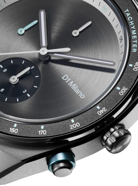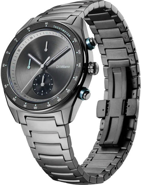 Элегантный хронограф D1 Milano Cronografo Essential Black CHBJ21 - идеальное воплощение мужественности и стиля. Этот многофункциональный аксессуар оснащен секундомером, тахиметромТахиметрРазмеченная шкала, располагается на ободке или безеле часов. Тахиметр позволяет рассчитать скорость на определённом участке пути, расстояние измеряется в километрах или милях.. что делает его незаменимым компаньоном в повседневной жизни. Изысканный корпус и браслет выполнены из стали с PVD-покрытиемPVDУльтратонкое покрытие наносится в технике вакуумного напыления, сочетает в себе нитрид титана особой прочности со слоем золота или оксида хрома. Несёт в себе декоративную или защитную функцию.. Неподвижный безельБезельВнешний ободок, закрепляющий стекло. В спортивных часах так называется поворотное кольцо с делениями на циферблате, выполняет роль таймера – замеряет отрезки времени на шкале. Неподвижный безель – элемент декора. Однонаправленно вращающийся безель на дайверских часах позволяет фиксировать моменты погружения и выныривания на поверхность. из нержавеющей стали с PVD-покрытиемPVDУльтратонкое покрытие наносится в технике вакуумного напыления, сочетает в себе нитрид титана особой прочности со слоем золота или оксида хрома. Несёт в себе декоративную или защитную функцию.. Минималистичный дизайн циферблата, защищенный прочным сапфировым стекломСапфировое стеклоПрочный и надёжный материал из кристалла сапфира синтетического происхождения, характеризующийся особой твёрдостью и устойчивостью к царапинам и повреждениям. с антибликовым покрытиемАнтибликовое покрытиеСлой оксида металла в 0,13-0,3 микрон, благодаря которому стекло часов не бликует и не отражает свет. Антибликовое покрытие уменьшает отражение света в 10 раз, обеспечивая отличную читаемость показателей циферблата., привлекает внимание своей сдержанной красотой. Стрелки с люминесцентным покрытиемЛюминесцентное покрытиеПозволяет считывать показания времени в темноте. Производители наносят на стрелки, часовые индексы, безель или поверхность циферблата светонакопительный состав, дающий холодное свечение., обеспечивающим хорошую читаемость в темноте. Надежная конструкция с задней крышкой на 8 винтах и стильный браслет с удобной застёжкой «бабочка» с кнопкамиЗастёжка "бабочка"Такой вид застёжки дополняется предохранителями, помогающими избежать случайного раскрытия браслета. Обладают изящным исполнением. обеспечивают комфорт при ношении. Водозащита 50 метров защищает часы от брызг и дождя, делая их подходящими для повседневного использования. Это не просто часы, а статусный аксессуар, подчеркивающий безупречный вкус и внимание к деталям своего владельца.