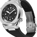 Часы D1 Milano DVRJ01 — это механические мужские часы с автоподзаводом, которые поражают своим спортивным стилем и точностью исполнения. С этими удобными часами покорение морских глубин выйдет на новый уровень. Корпус из нержавеющей стали серебристого цвета гармонично сочетается с черным циферблатом. Запас хода 41 час. Циферблат защищен сапфировым стекломСапфировое стеклоПрочный и надёжный материал из кристалла сапфира синтетического происхождения, характеризующийся особой твёрдостью и устойчивостью к царапинам и повреждениям., а черный силиконовый ремешок придает ему элегантный вид. На циферблате часов есть окошко даты в положении 4 часа. На часовую, минутную стрелки нанесено люминесцентное покрытиеЛюминесцентное покрытиеПозволяет считывать показания времени в темноте. Производители наносят на стрелки, часовые индексы, безель или поверхность циферблата светонакопительный состав, дающий холодное свечение., которое светится в темноте, создавая необычное изображение. Водонепроницаемость часов достигает 300 метров, что делает их подходящими для для дайвинга.
