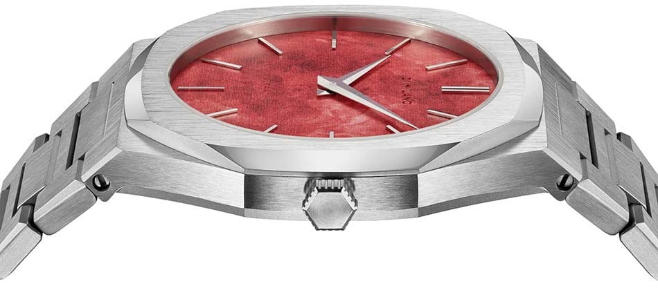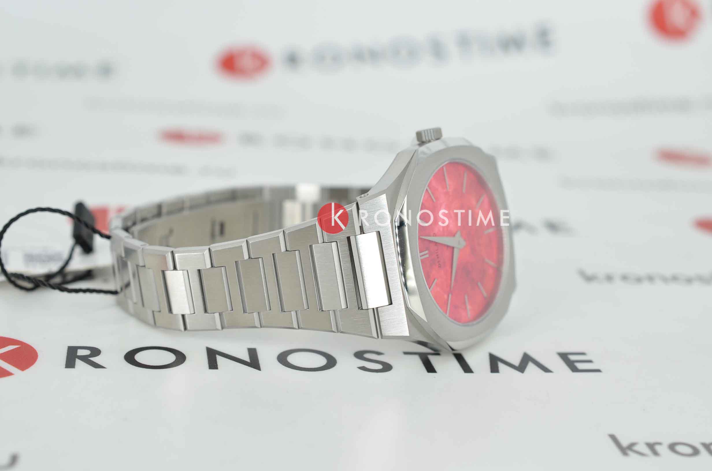 Часы D1 Milano UTBJ20 — это уникальные кварцевые часы, которые подчеркнут ваш изысканный стиль. Эти наручные часы из коллекции Ultra Thin с эффектным монохромным дизайном станут выразительным акцентом вашего образа. Корпус диаметром 40 мм из нержавеющей стали придает часам современный и утонченный вид. Красный циферблат метками в виде штрихов, а серебристые хроматические стрелки и индексы создают стильный контраст, подчёркивая элегантность модели. Задняя крышка из нержавеющей стали закреплена на 8-х винтах и дополнена индивидуальным серийным номером, что подчеркивает уникальность каждого экземпляра. Стальной браслет с раскладной застёжкойРаскладная застёжкаТакой тип застёжки используется только на браслетах из металла. Она никогда не раскрывается полностью, происходит разделение на 2 и более частей. Раскладывающая застёжка снизит вероятность потери часов к минимуму. обеспечивает надежность и комфорт в повседневном использовании. Сапфировое стеклоСапфировое стеклоПрочный и надёжный материал из кристалла сапфира синтетического происхождения, характеризующийся особой твёрдостью и устойчивостью к царапинам и повреждениям. с антибликовым покрытием защищает циферблат, а водозащита до 50WR делает эти часы практичным выбором для любых условий. Благодаря калибру Miyota 1L22, они отличаются точностью и надежностью. Эти итальянские часы представляют собой идеальное сочетание традиционного мастерства и инновационного подхода, воплощая в себе новый взгляд на классическую элегантность.