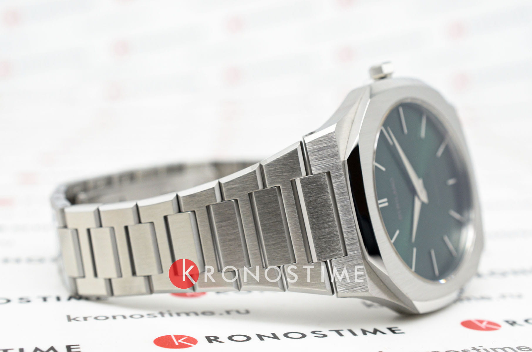Часы D1 Milano UTBJ37 — это уникальные кварцевые часы, которые подчеркнут ваш изысканный стиль. Эти наручные часы из коллекции Ultra Thin с эффектным монохромным дизайном станут выразительным акцентом вашего образа. Корпус диаметром 40 мм из нержавеющей стали придает часам современный и утонченный вид. Зеленый циферблат метками в виде штрихов, а серебристые хроматические стрелки и индексы создают стильный контраст, подчёркивая элегантность модели. Задняя крышка из нержавеющей стали закреплена на 8-х винтах и дополнена индивидуальным серийным номером, что подчеркивает уникальность каждого экземпляра. Стальной браслет с раскладной застёжкойРаскладная застёжкаТакой тип застёжки используется только на браслетах из металла. Она никогда не раскрывается полностью, происходит разделение на 2 и более частей. Раскладывающая застёжка снизит вероятность потери часов к минимуму. обеспечивает надежность и комфорт в повседневном использовании. Сапфировое стеклоСапфировое стеклоПрочный и надёжный материал из кристалла сапфира синтетического происхождения, характеризующийся особой твёрдостью и устойчивостью к царапинам и повреждениям. с антибликовым покрытием защищает циферблат, а водозащита до 50WR делает эти часы практичным выбором для любых условий. Благодаря калибру Miyota 1L22, они отличаются точностью и надежностью. Эти итальянские часы представляют собой идеальное сочетание традиционного мастерства и инновационного подхода, воплощая в себе новый взгляд на классическую элегантность.